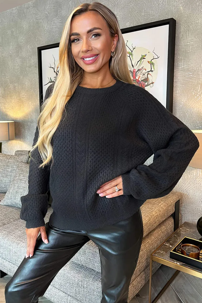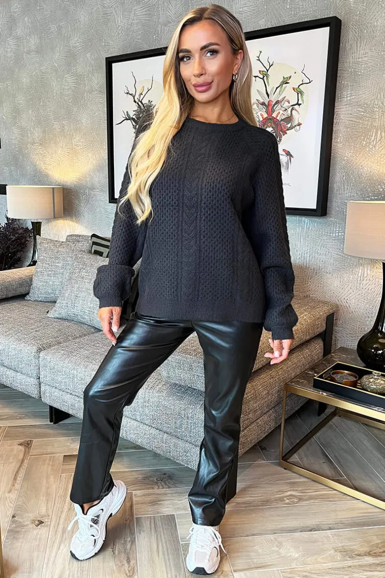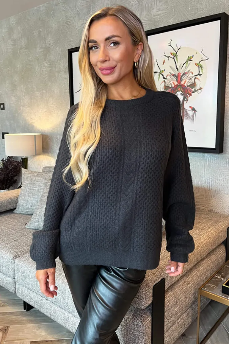 Stay cosy this winter in our Anthracite Round Neck Cable Knit Jumper.