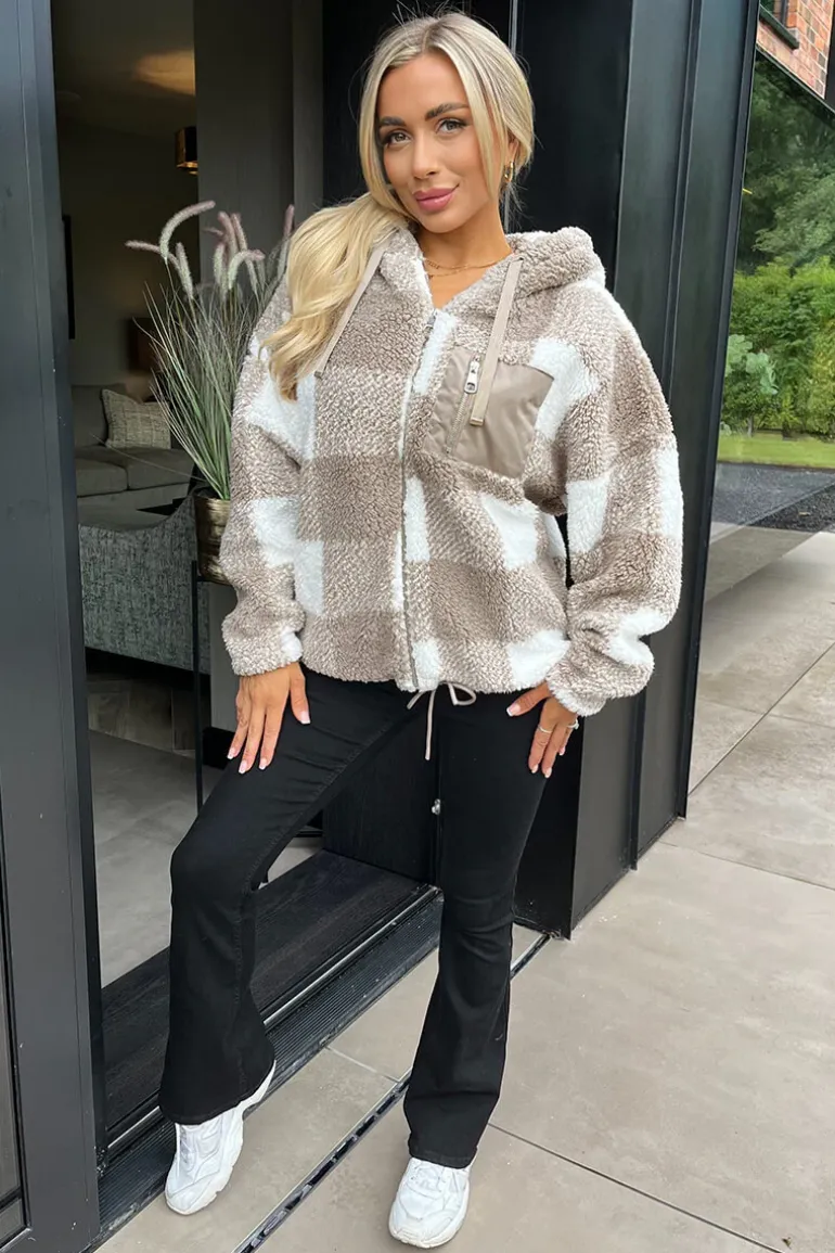 Our Biscuit Check Pocket Detail Hooded Teddy Jacket is a trendy