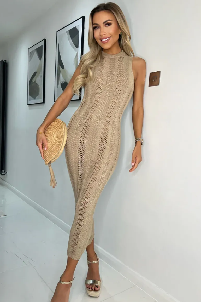 Our Biscuit Sleeveless Crochet Midi Dress is the perfect addiction to