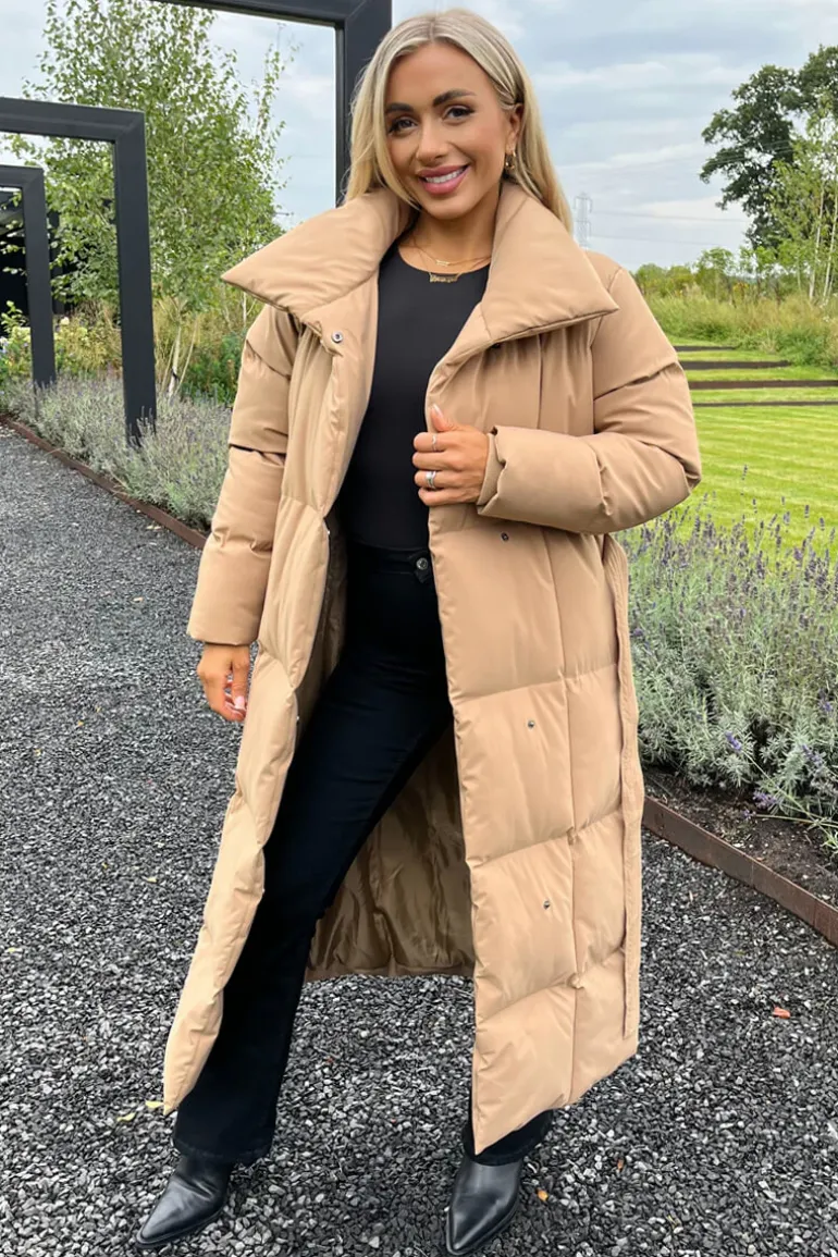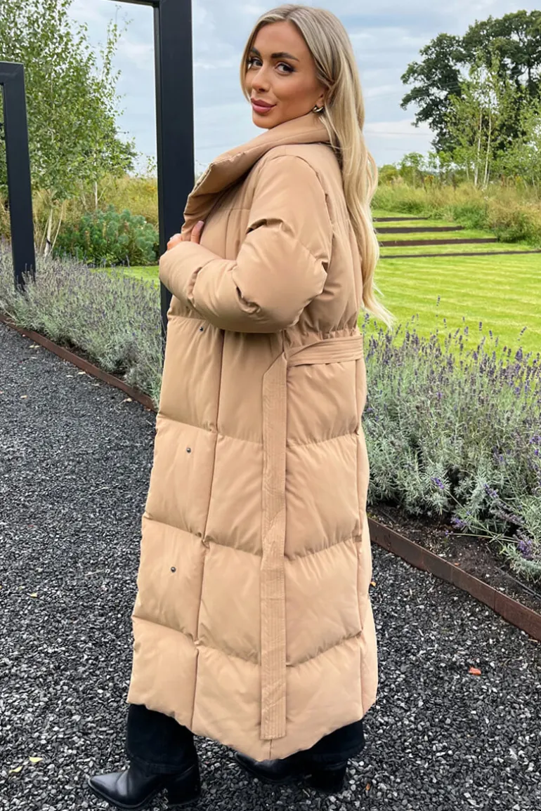 Our Biscuit Tie Waist Quilted Longline Puffer Coat is a must-have for