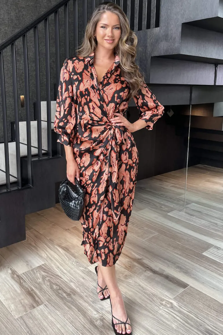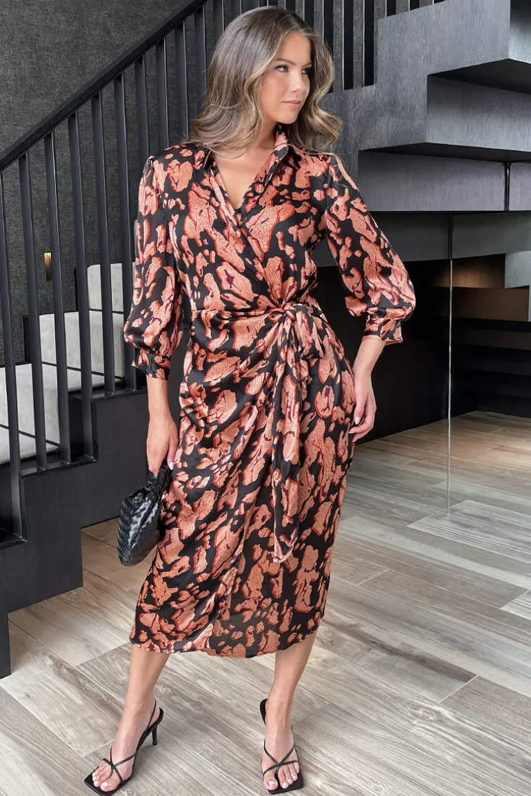 Make a statement in our Black Abstract Print 3/4 Sleeved Tie Waist