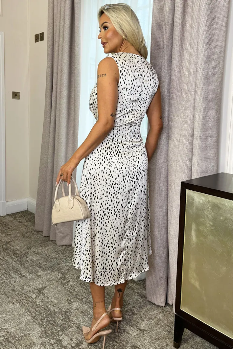 Our Black And Cream Cheetah Print Gathered Midi Dress With Shoulder