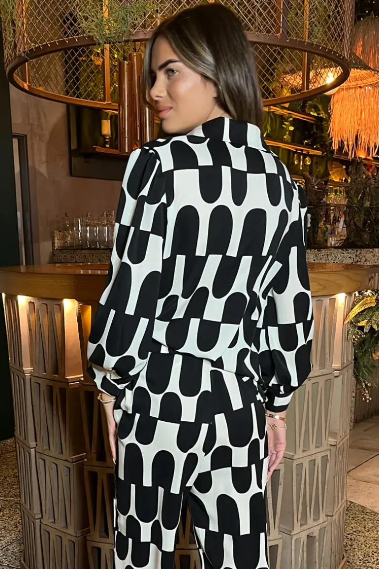 Our Black and Cream Geometric Print 3/4 Sleeve Shirt is so versatile!