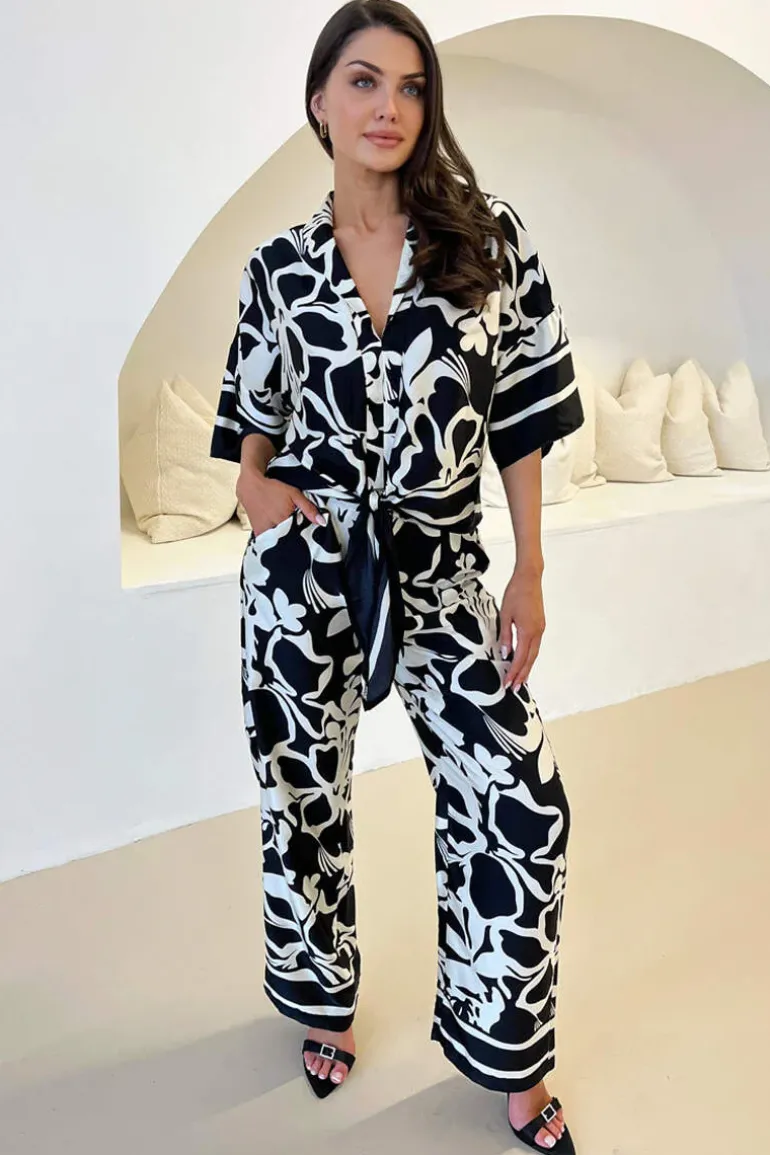 our Black And White Abstract Printed Tie Waist Top for the perfect