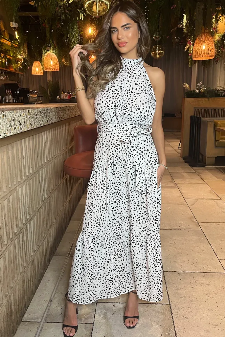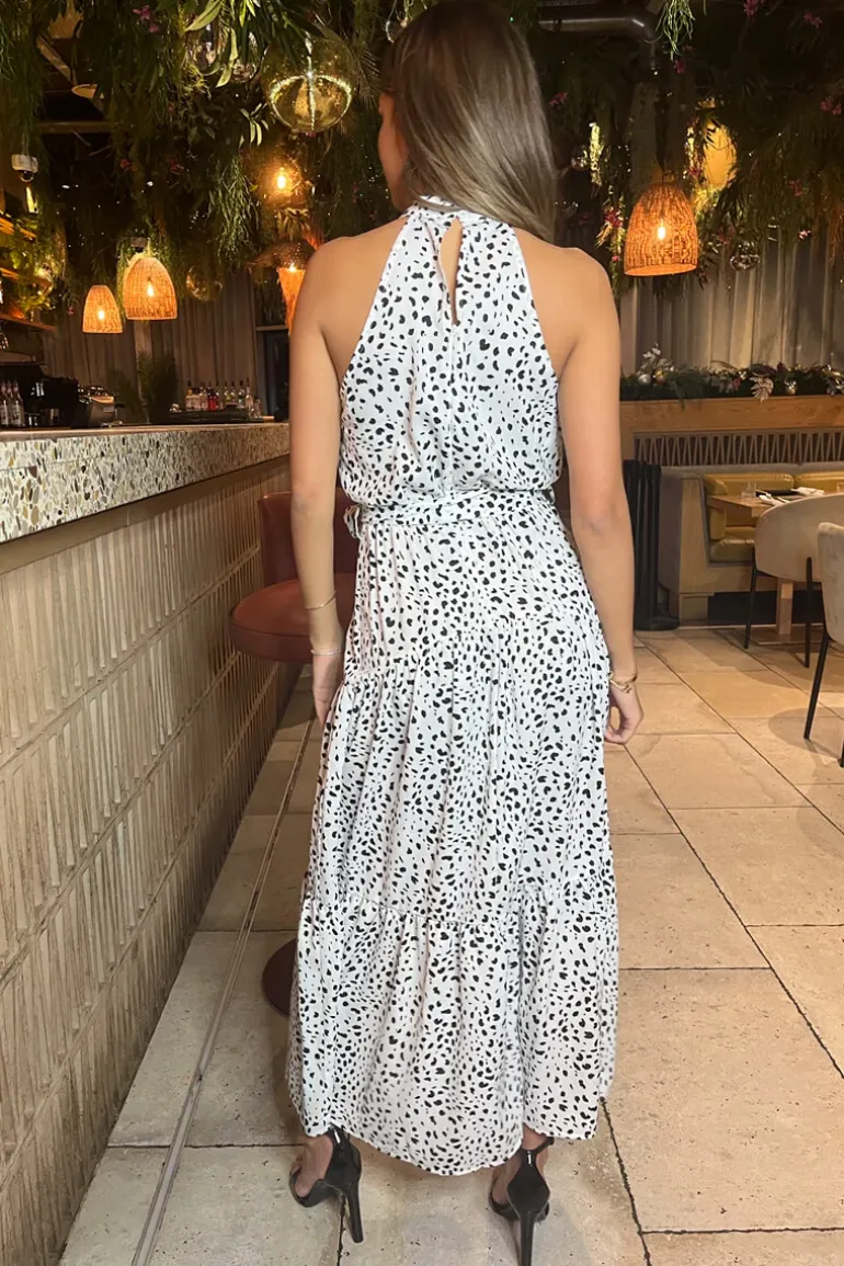 Look sophisticated in this Black And White Halterneck Tie Waist Midi