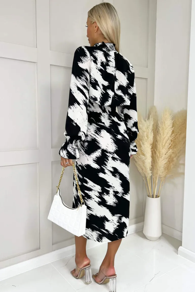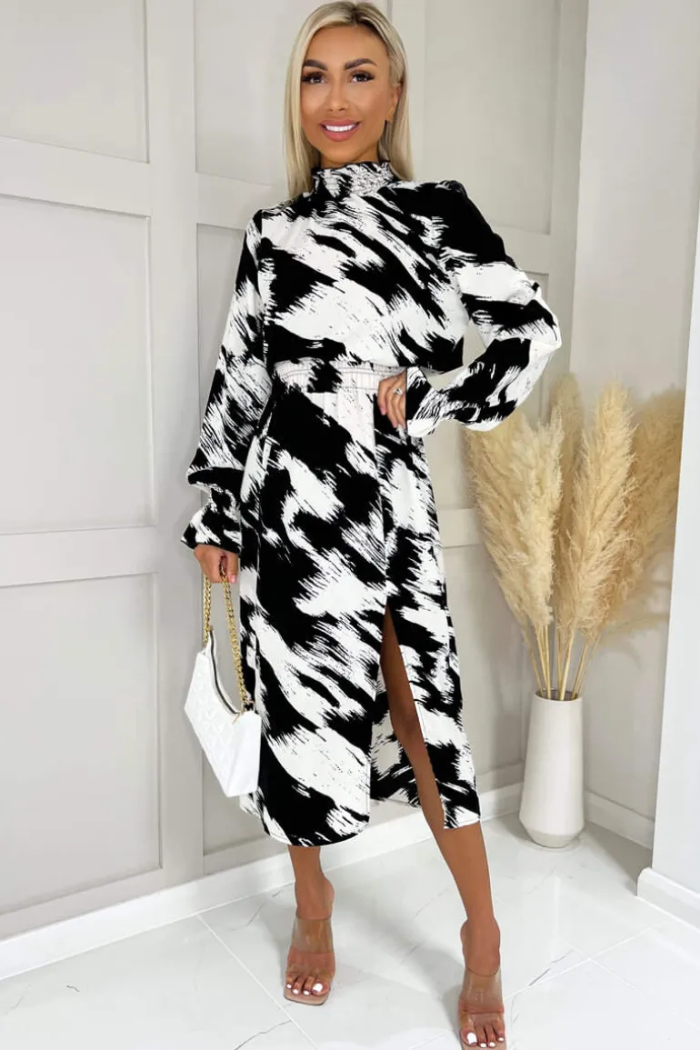 Feel sophisticated in this Black And White Printed Shirred Detail