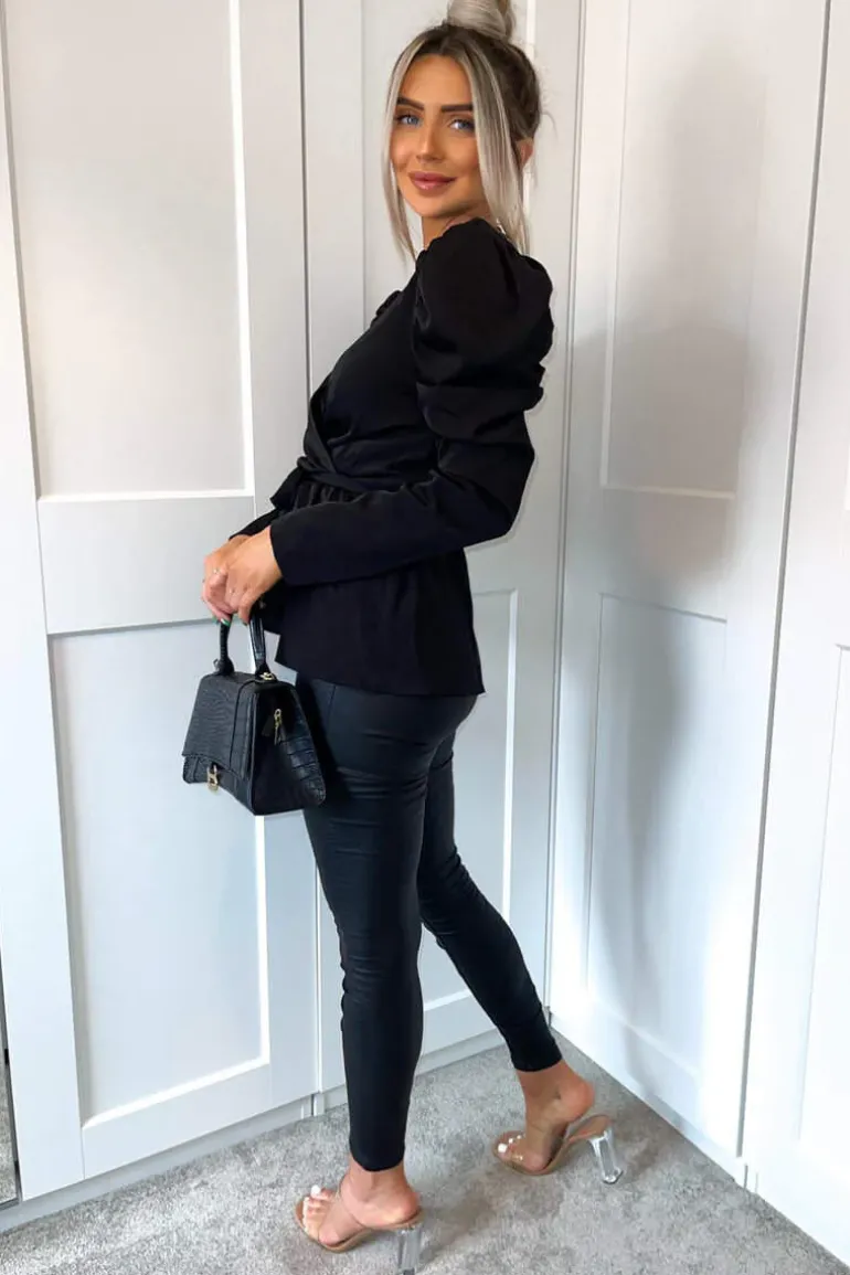 Feel super cute in this Black Belted Wrap Long Sleeve Top. Taking your