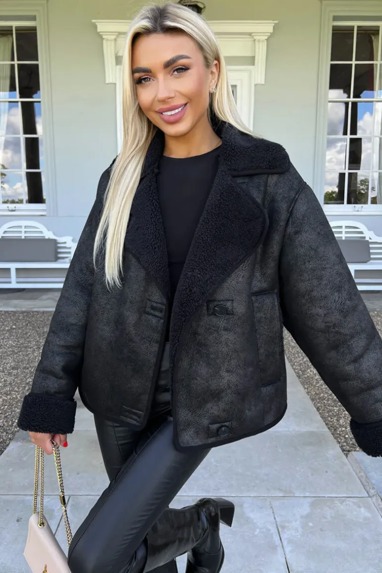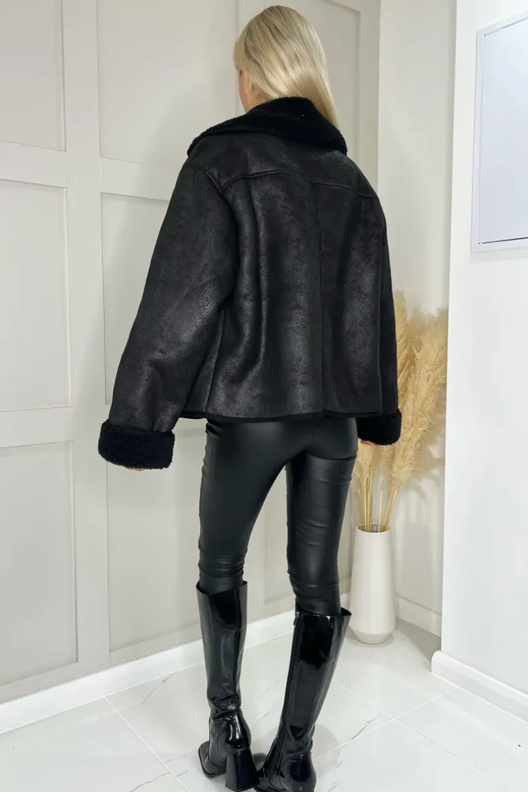 Our Black Faux Shearling Coat is the ultimate winter coat! Featuring