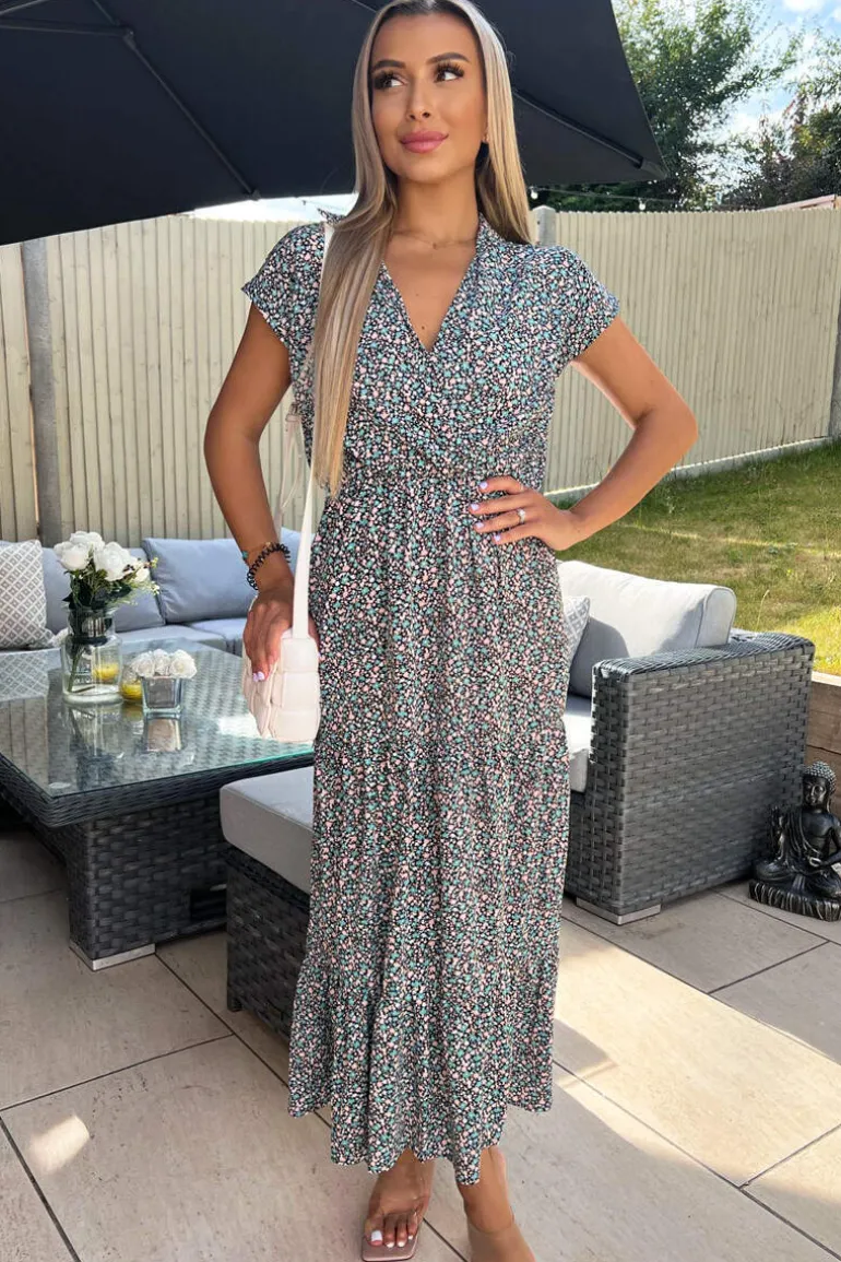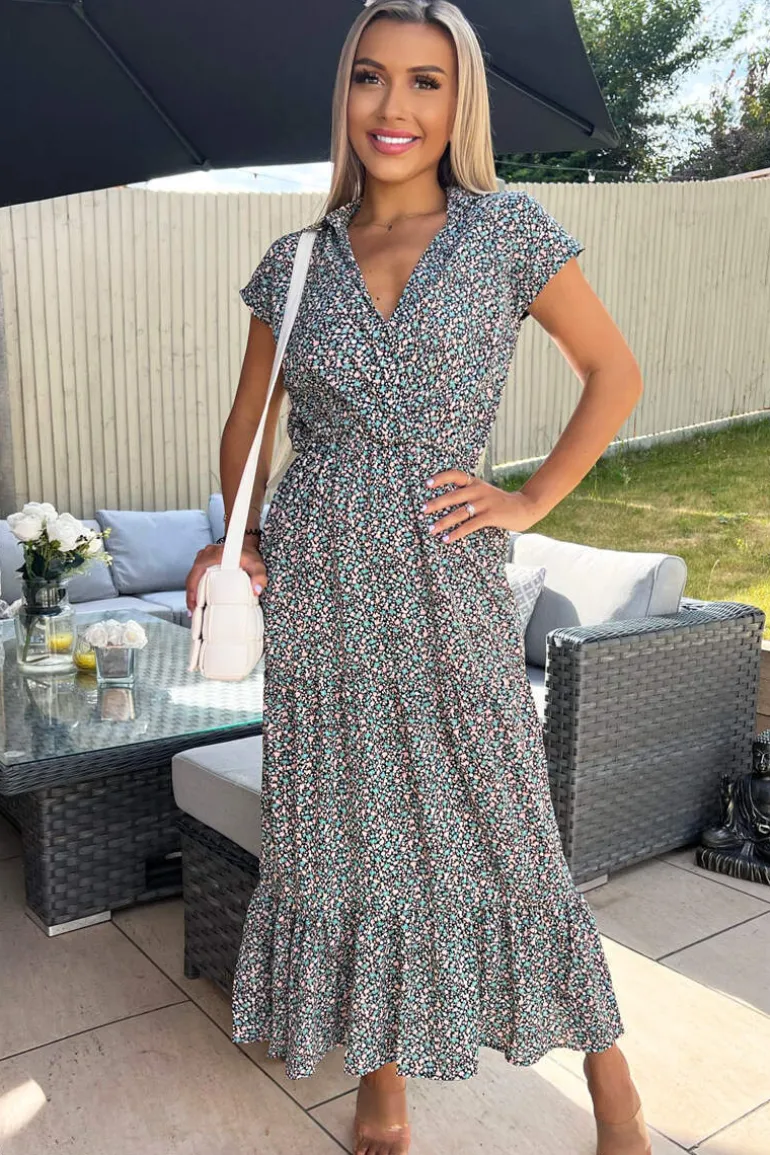 Our Black Floral Print Short Sleeved V-Neck Midi Smock Dress is a