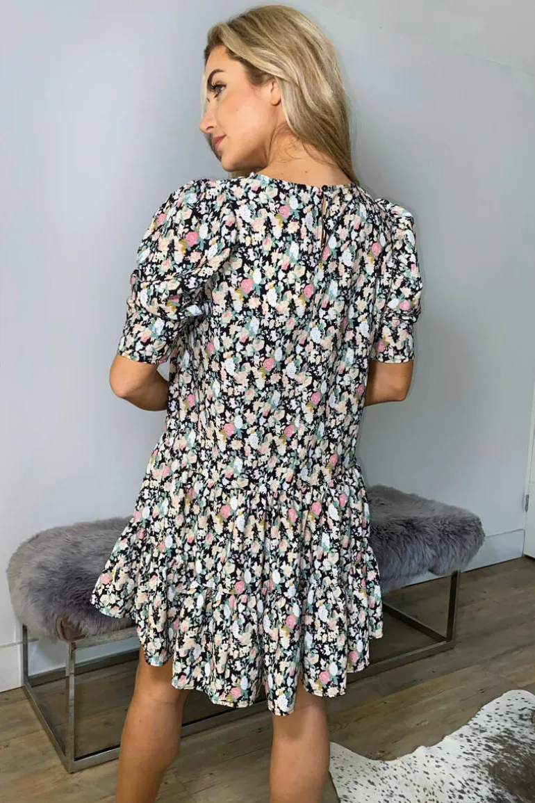 This Black Floral Print Smock Dress is your summer essential! Simple