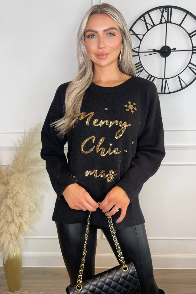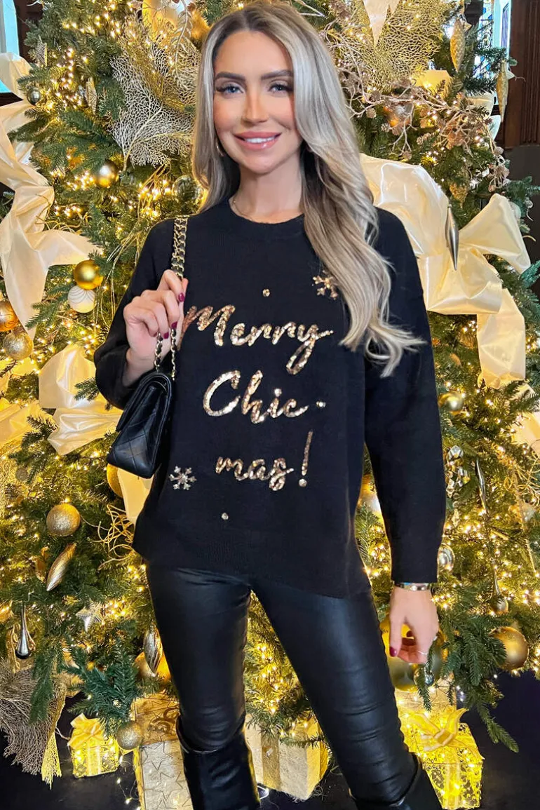 Warm and cosy our Black Merry Chic-mas Sequin Knit Jumper is perfect