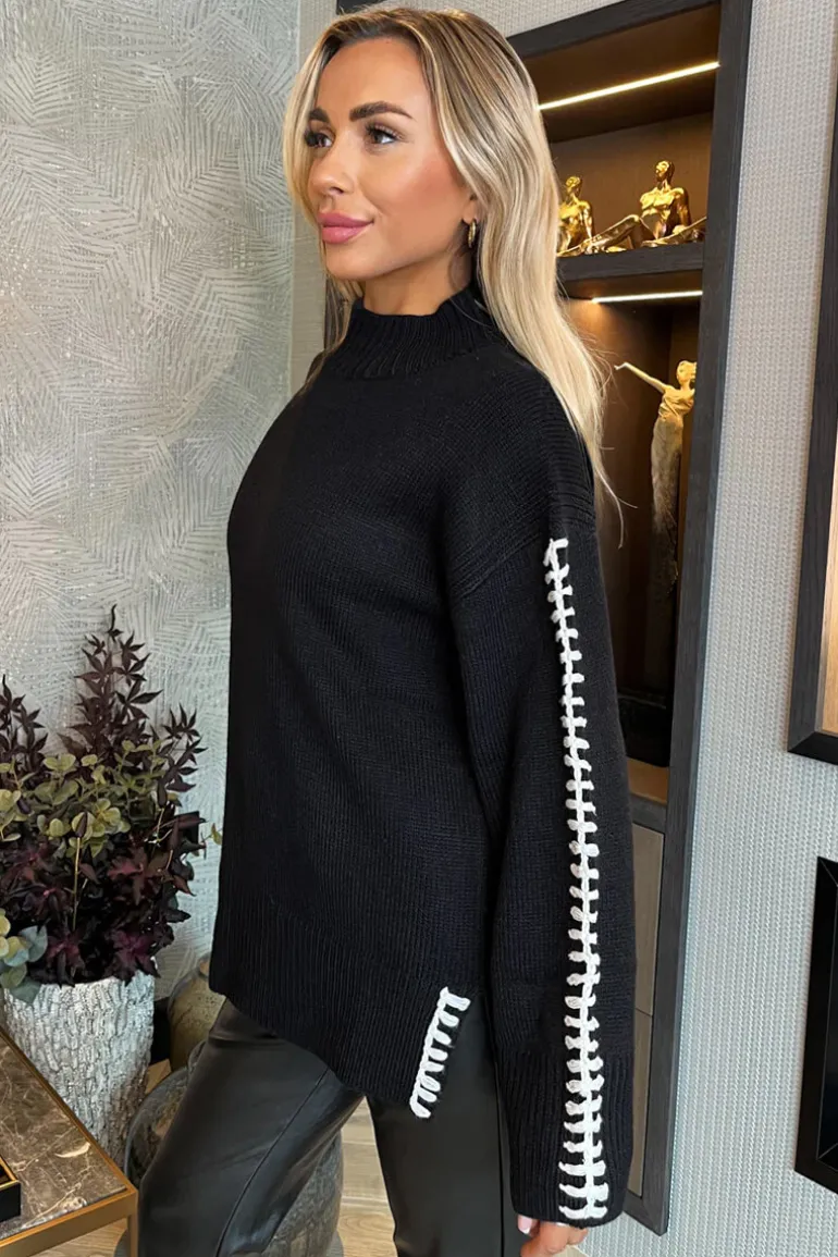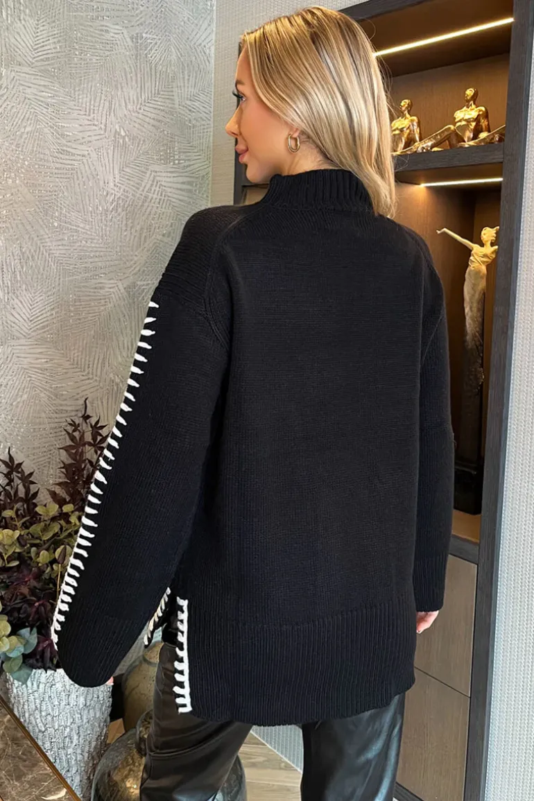 Refresh your winter wardrobe with our Black Mock Neck Blanket Stitch