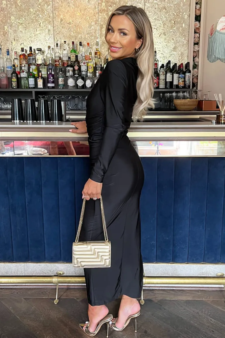 Sleeved Draped Midi Dress. Featuring an open off the shoulder