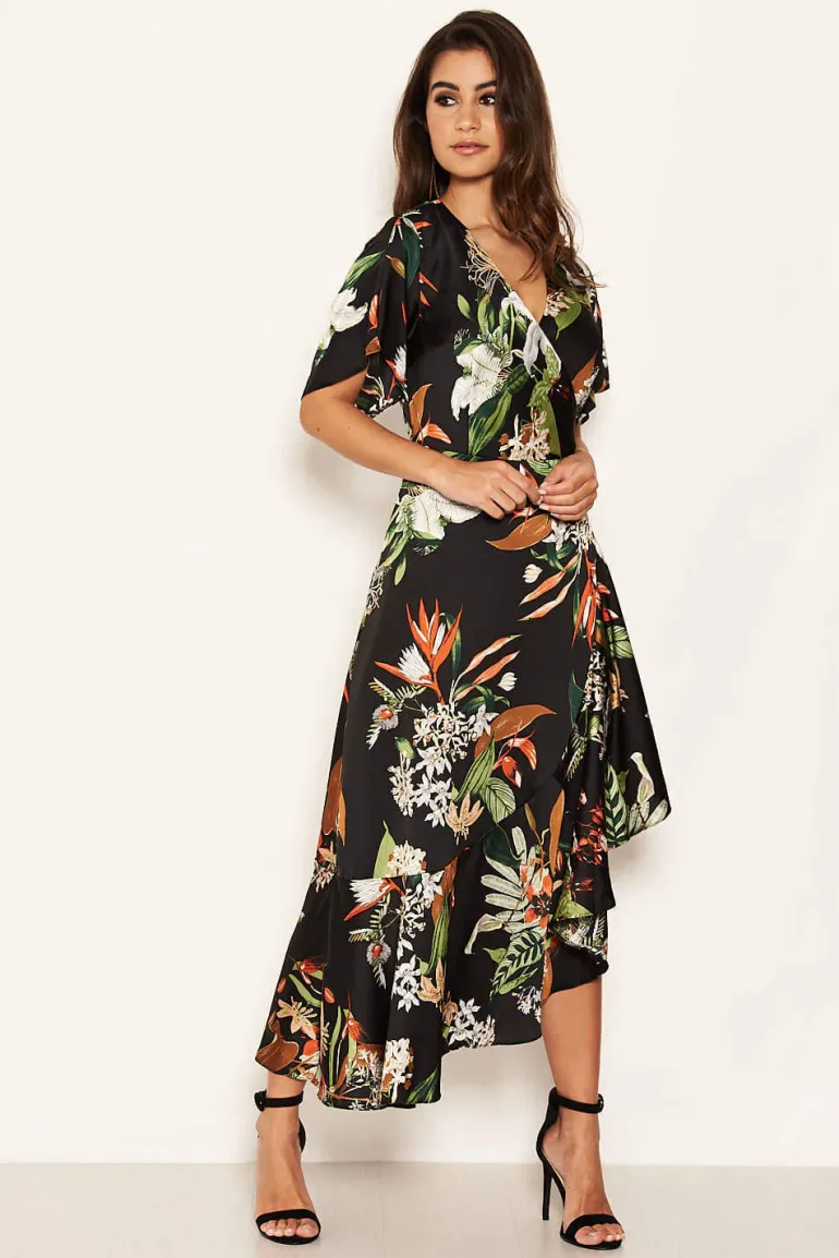 Our Black Printed Floral Frill Hem Dress is a must have this summer!