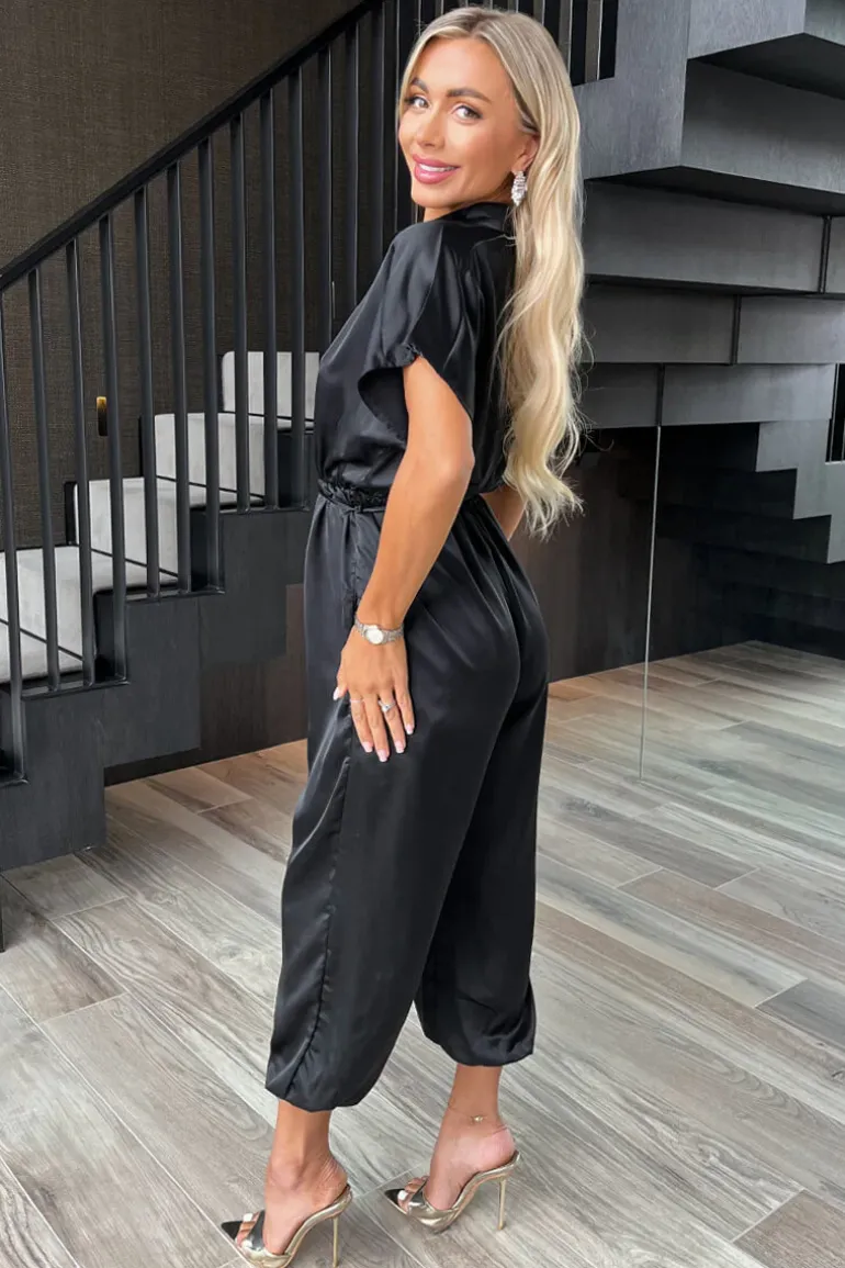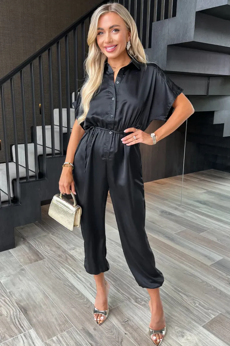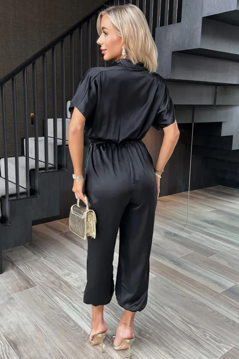 Jumpsuit. Featuring our classy satin-feel fabric, short sleeves, a