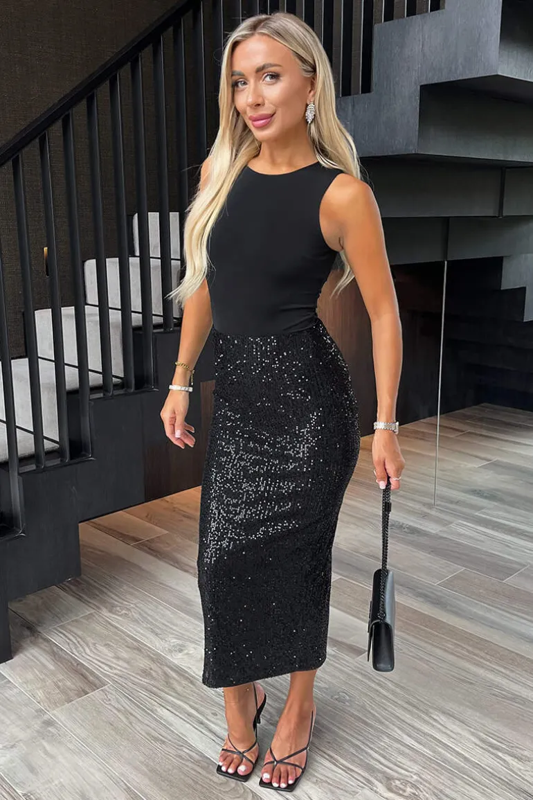 Add some sparkle to your wardrobe with our Black Sequin High Waist