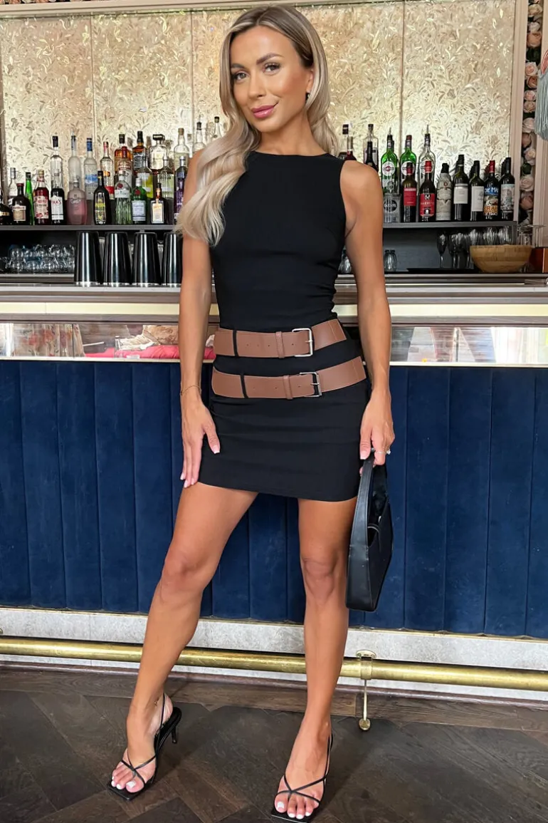 Stand out from the crowd in our Black Sleeveless Double Belt Detail