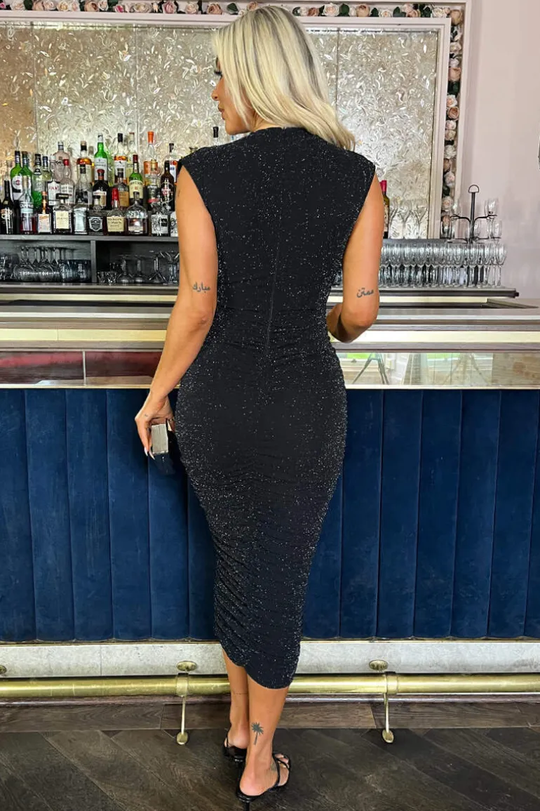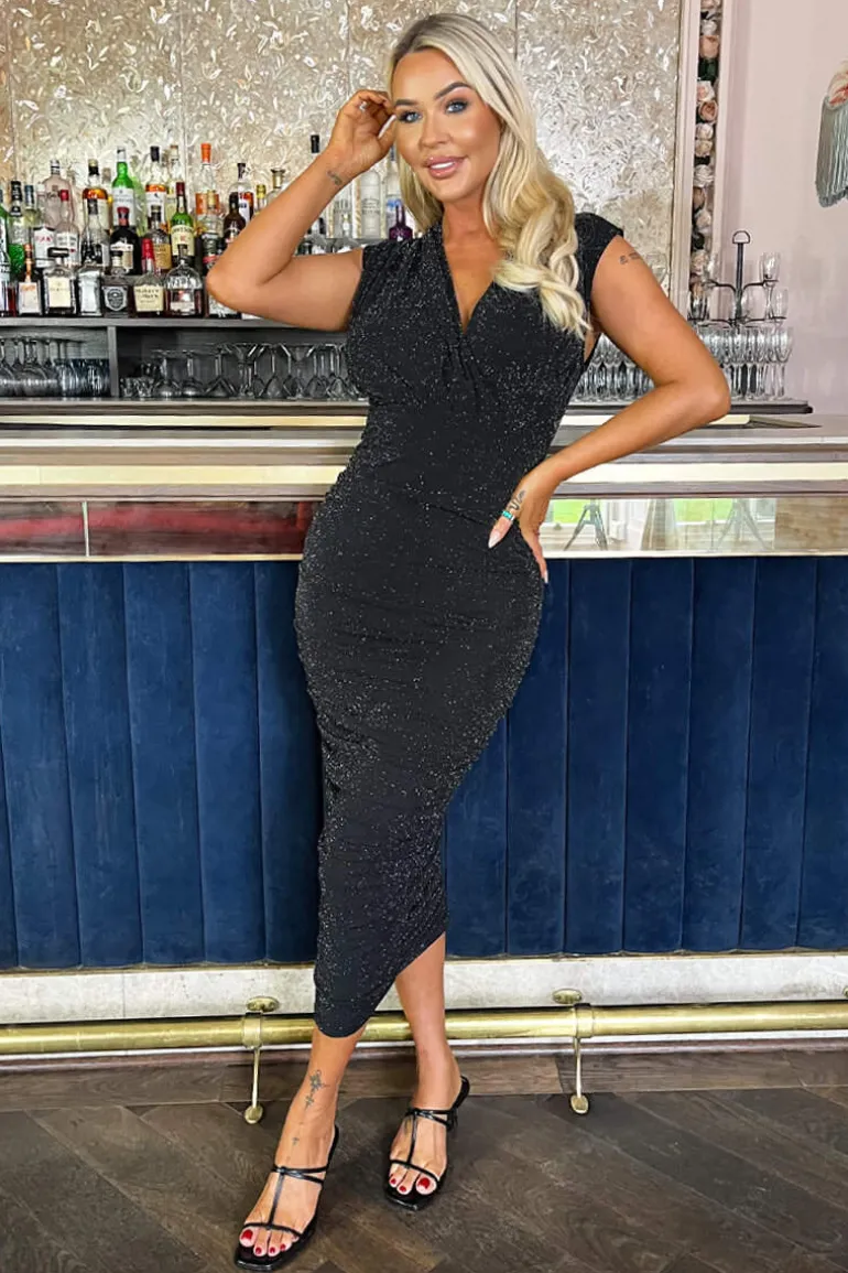 Get ready to sparkle this season with our Black Sparkle Wrap Top