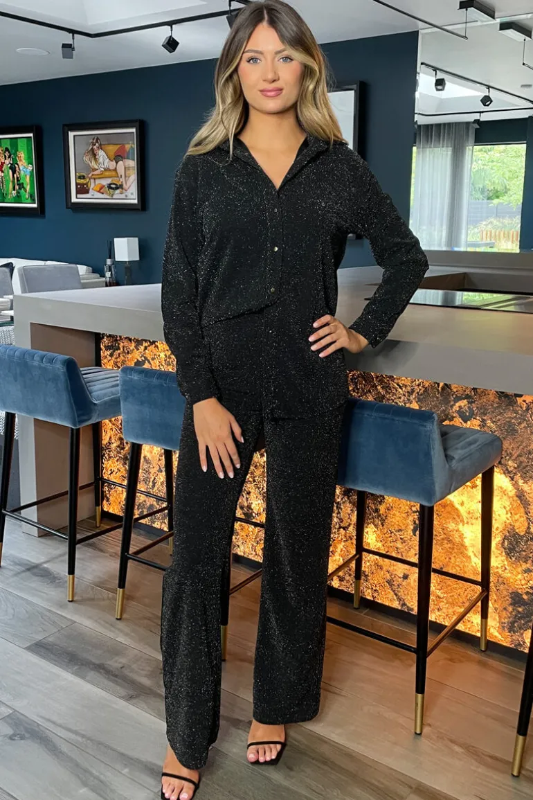 heels and our Black Sparkly Long Sleeve Shirt for a coordinated party