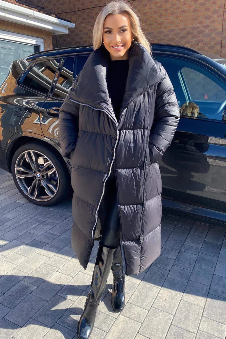 This Black Wrap Puffer Coat is the essential coat for the colder