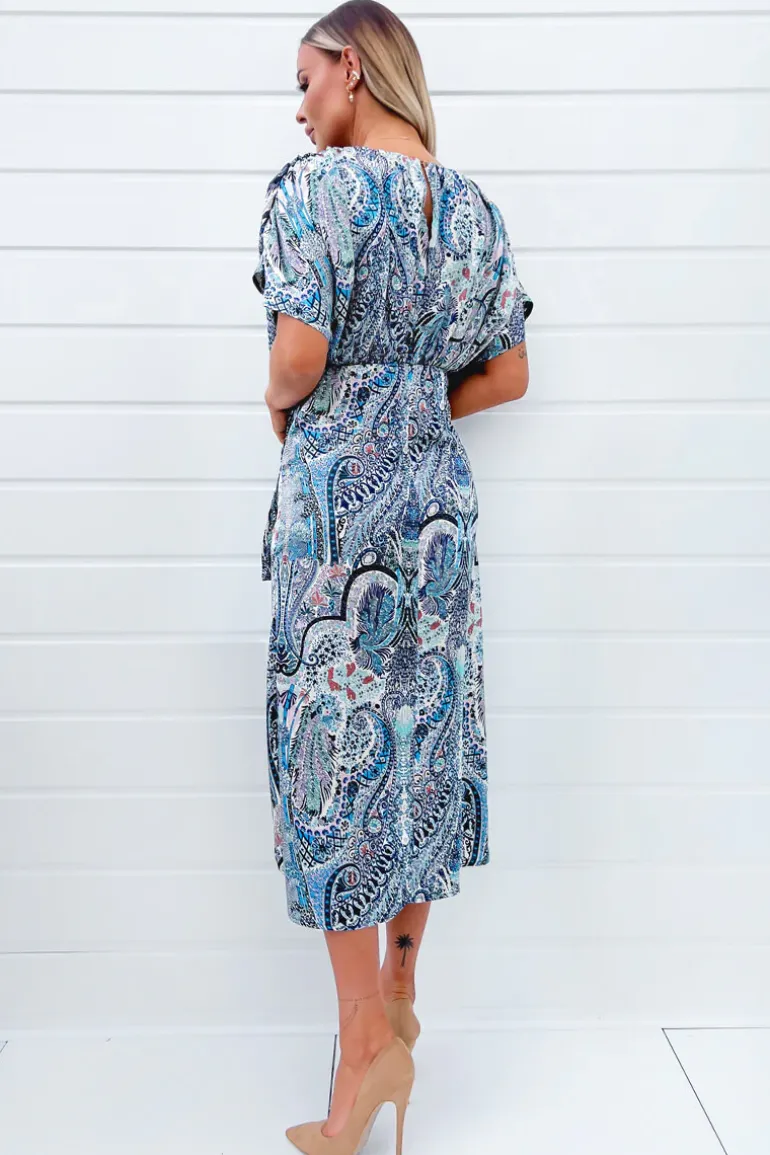 Look and feel gorgeous in our Blue Paisley Printed High Low Midi
