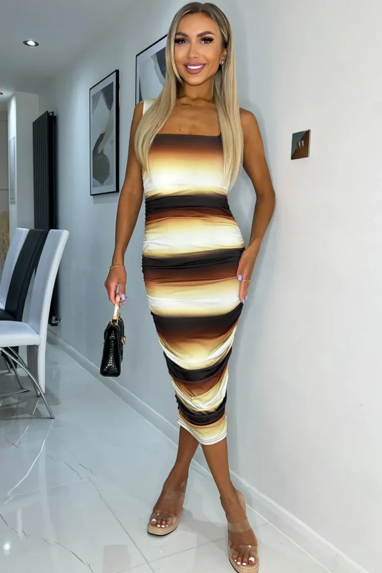 Upgrade your weekend wardrobe with our Brown Ombre Printed Square Neck