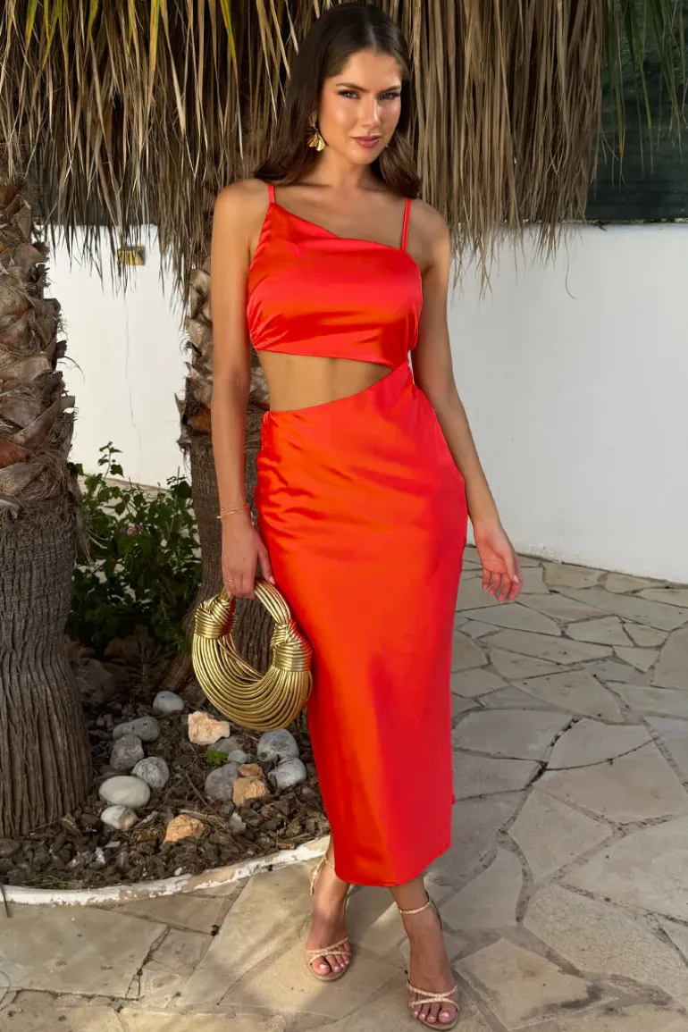 Our Burnt Orange Asymmetric Cut Out Strappy Midi Dress combines a