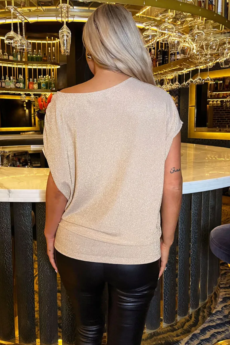 Our Champagne Sparkle Asymmetric Draped Top combines our vibrant