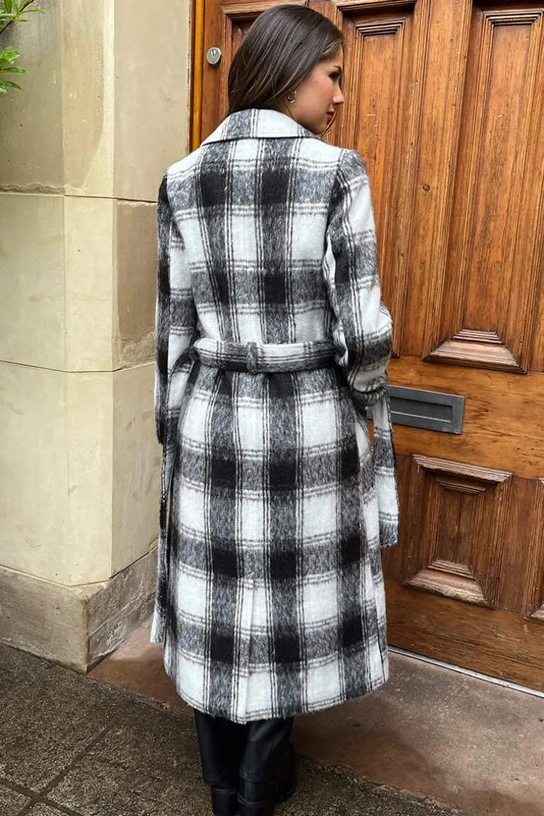 Feel sophisticated in our Chocolate Brushed Check Tie Belt Trench