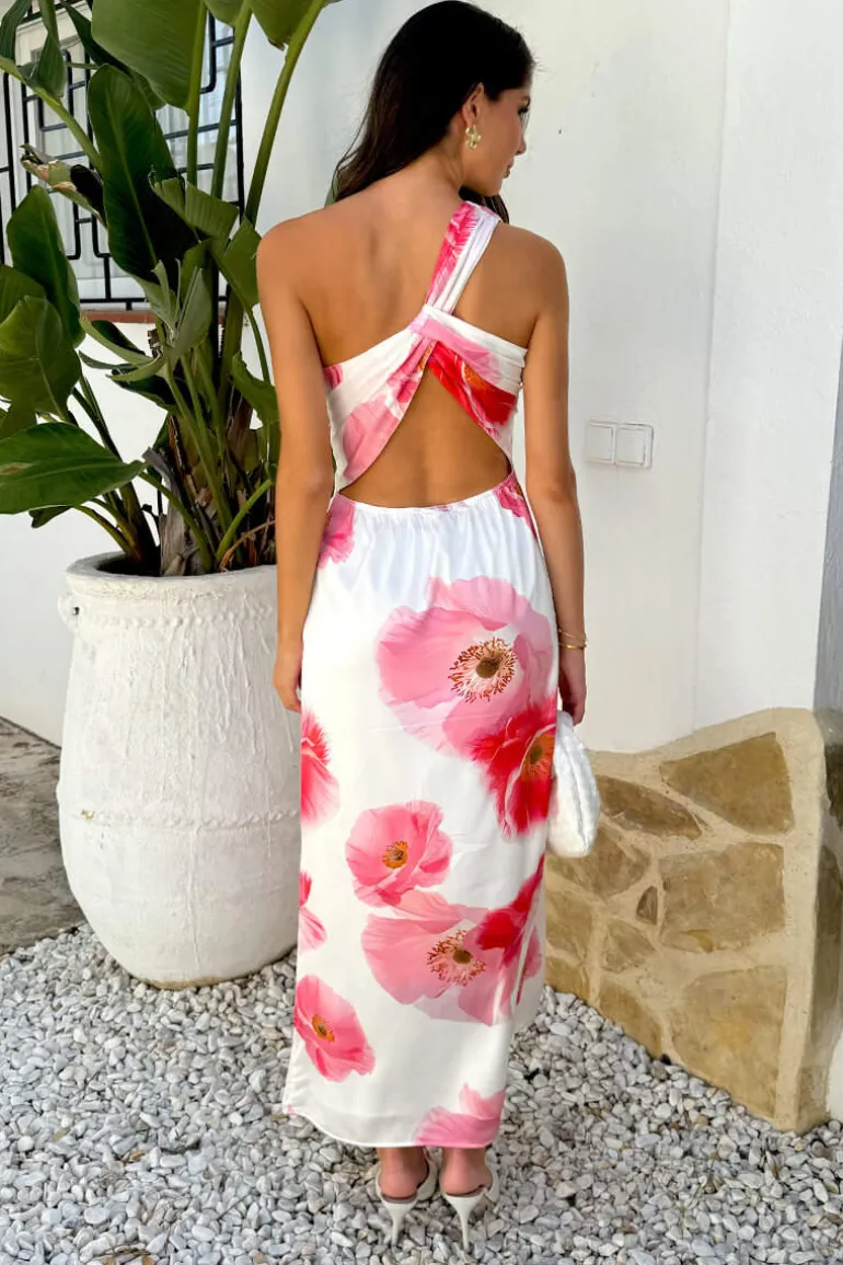 Our Cream And Pink Floral Print One Shoulder Open Back Twist Detail