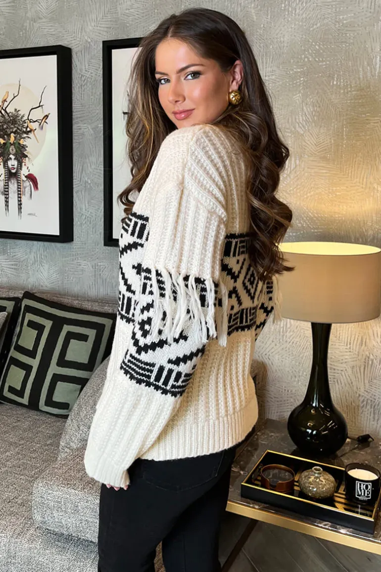 Complete your winter wardrobe with our Cream Fairisle Fringe Sleeve