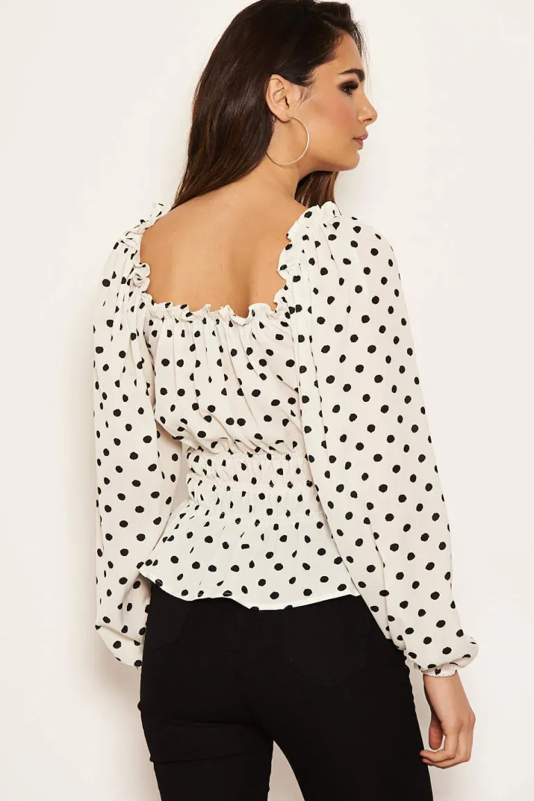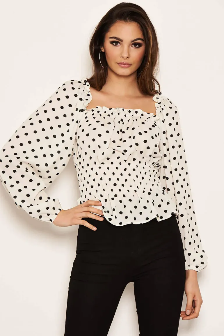 Our cream polka dot long sleeve top is perfect for this season!! This