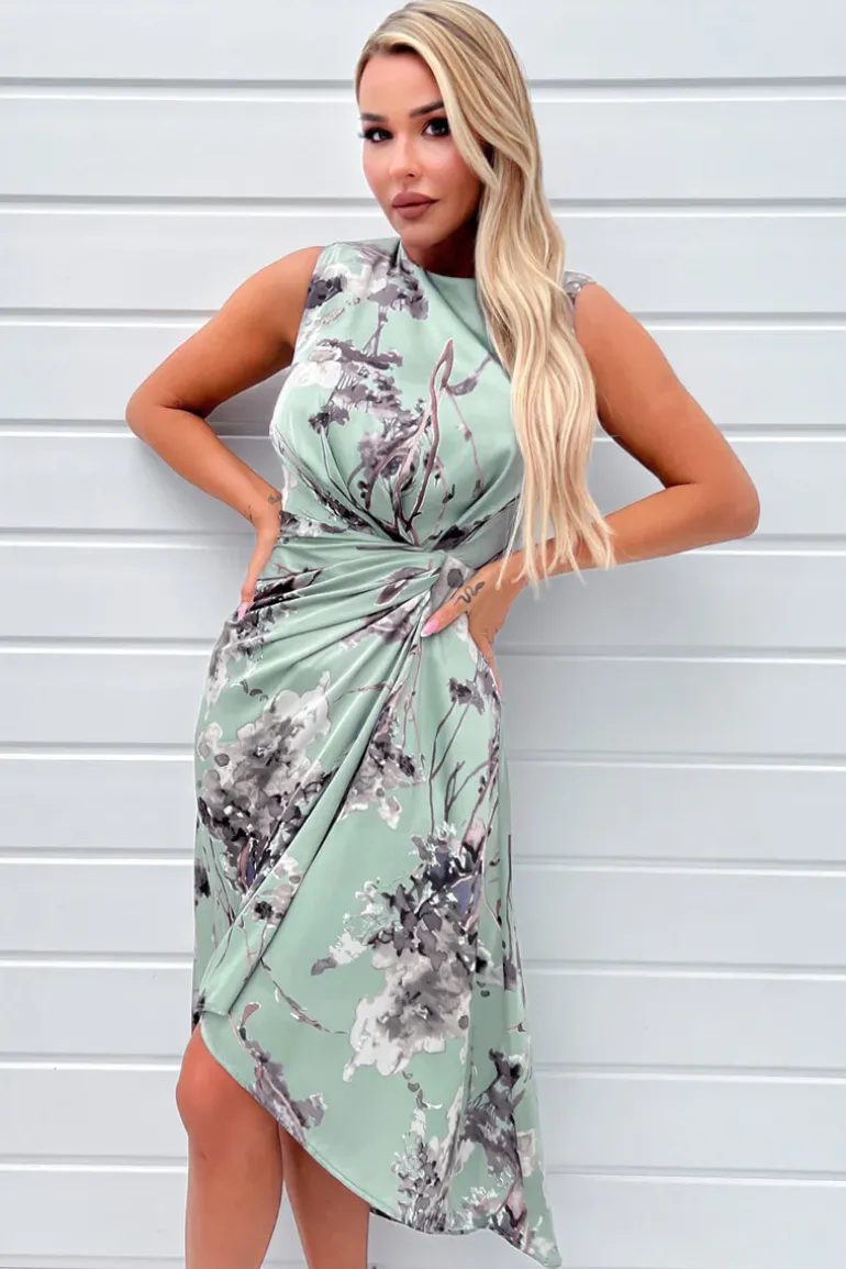 Our Duck Egg Print Gathered Midi Dress With Shoulder Pads is the