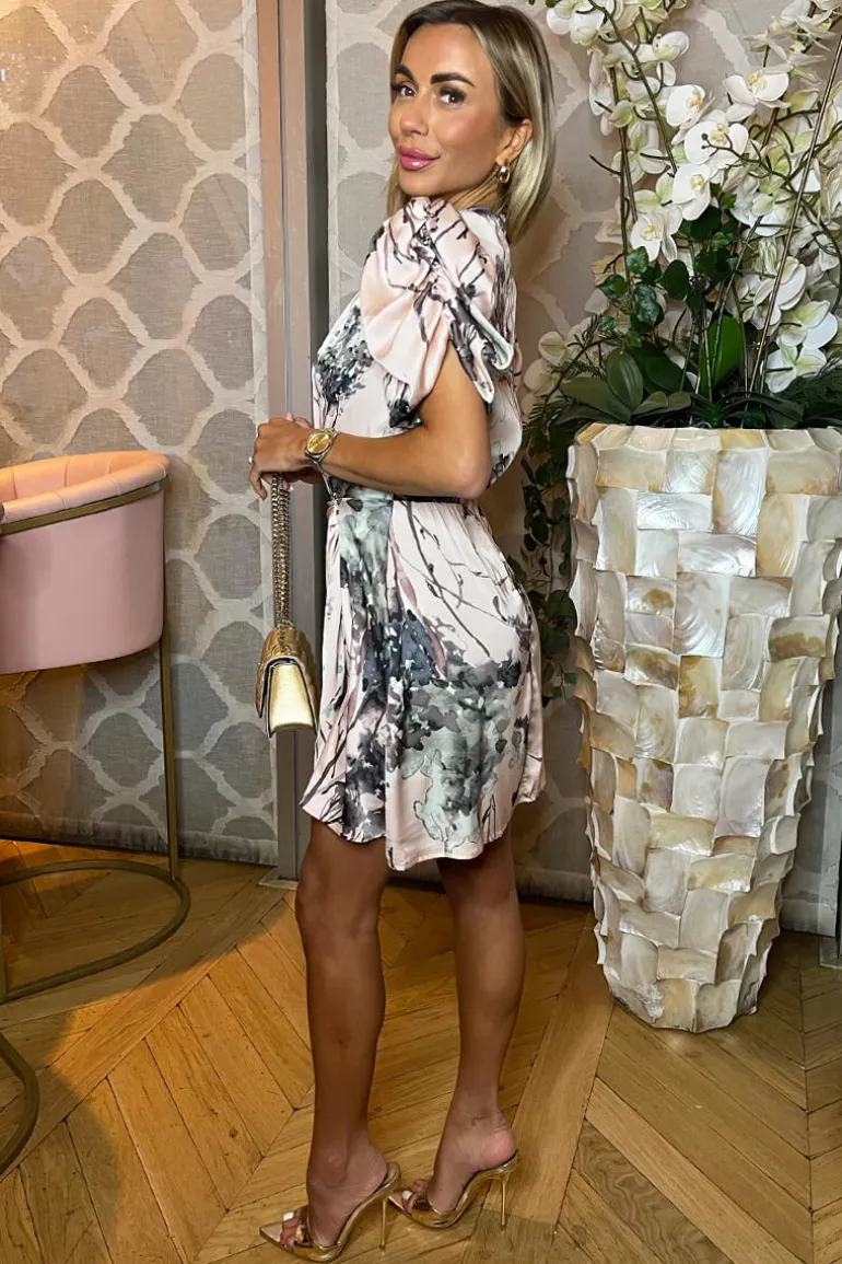 Stay on trend with this Dusty Pink Printed Short Puff Sleeve Gathered