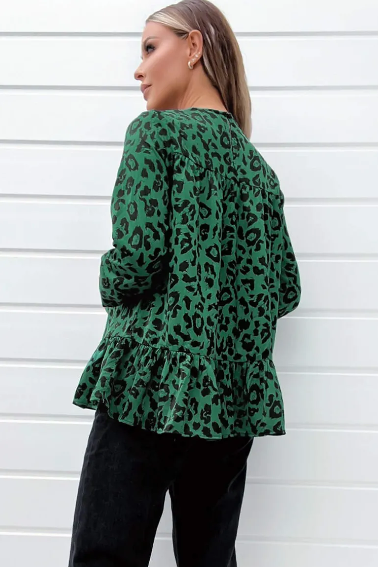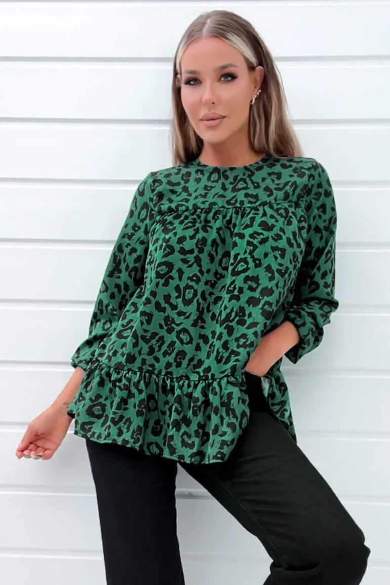 Shop our Green And Black Animal Print Long Sleeve Smock Top!