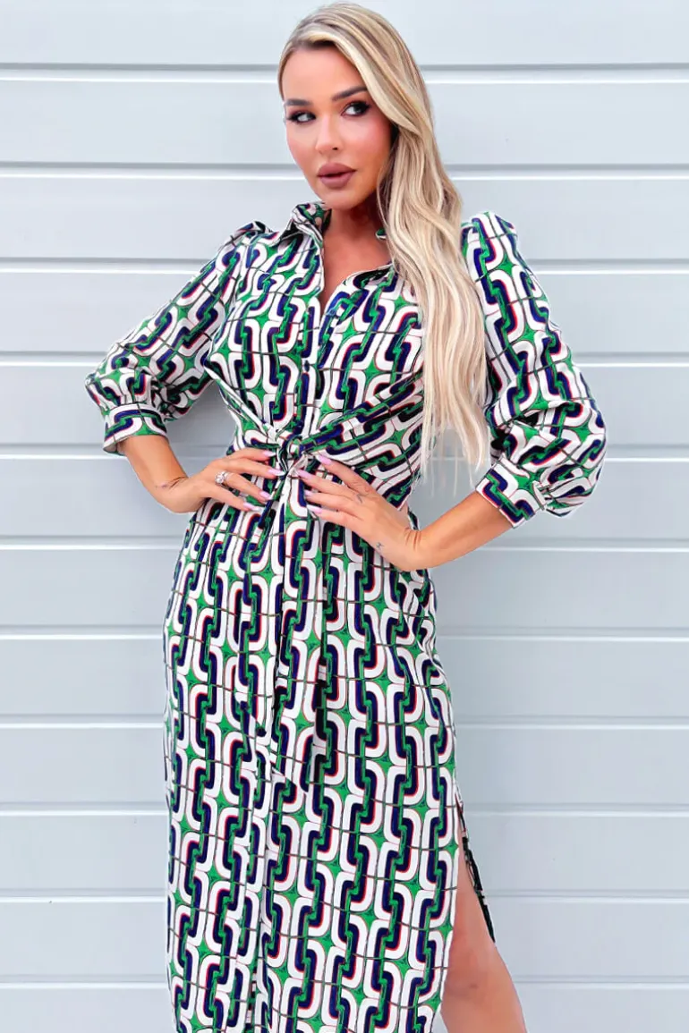 This Cream Green And Blue Geometric Multi Printed 3/4 Cuffed Sleeve