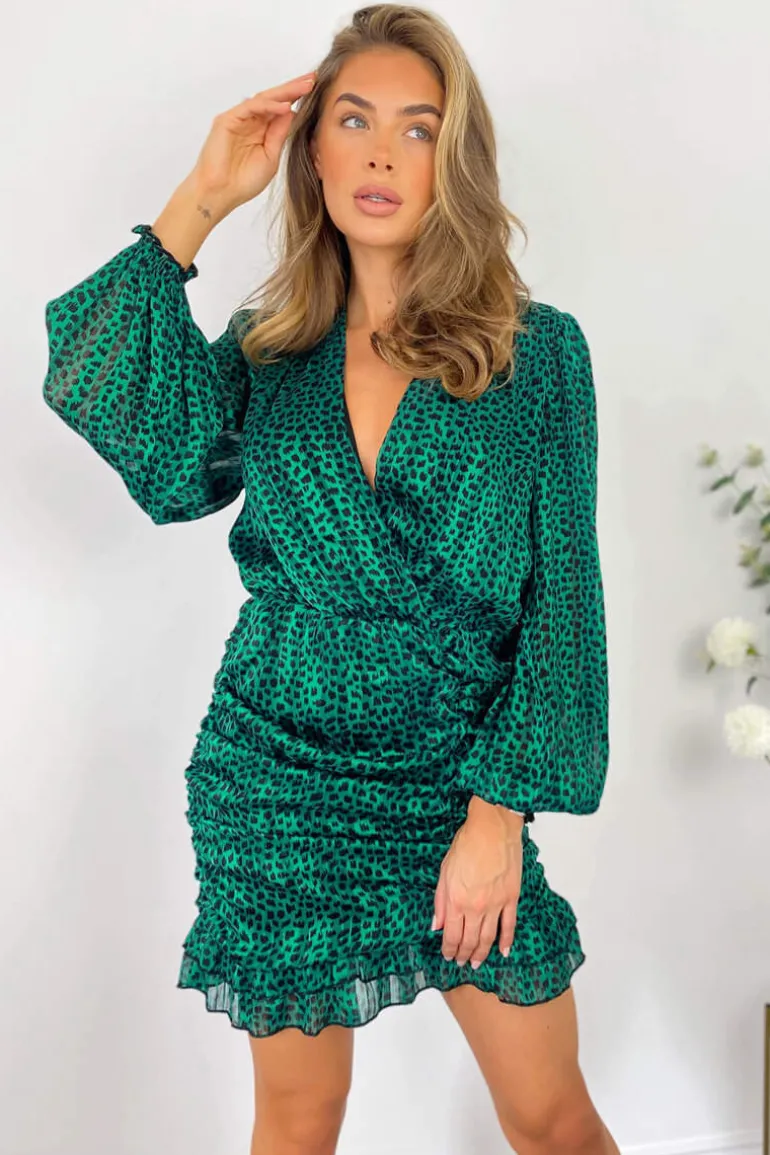 Make a statement this season in our Green Ruched Long Sleeve Mini