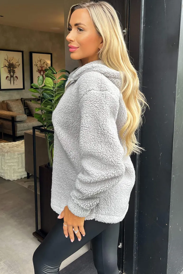 Our Grey 1/4 Zip Teddy Hoodie is a trendy winter season must-have.