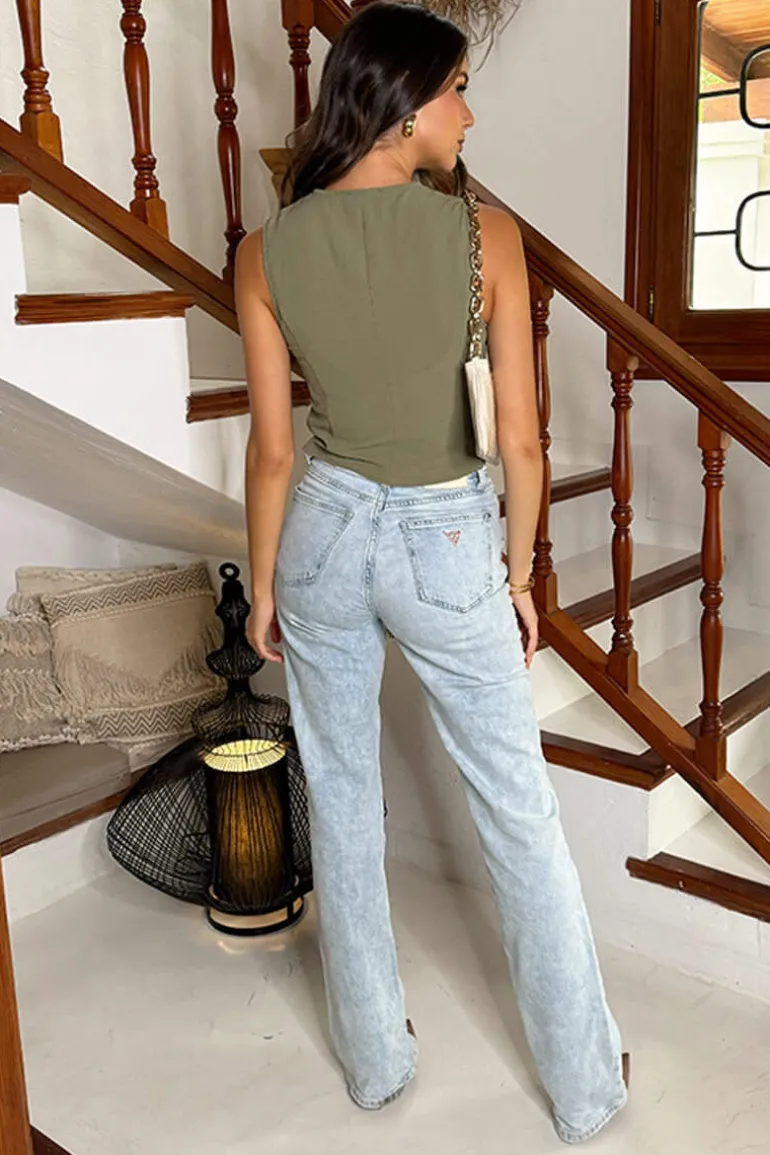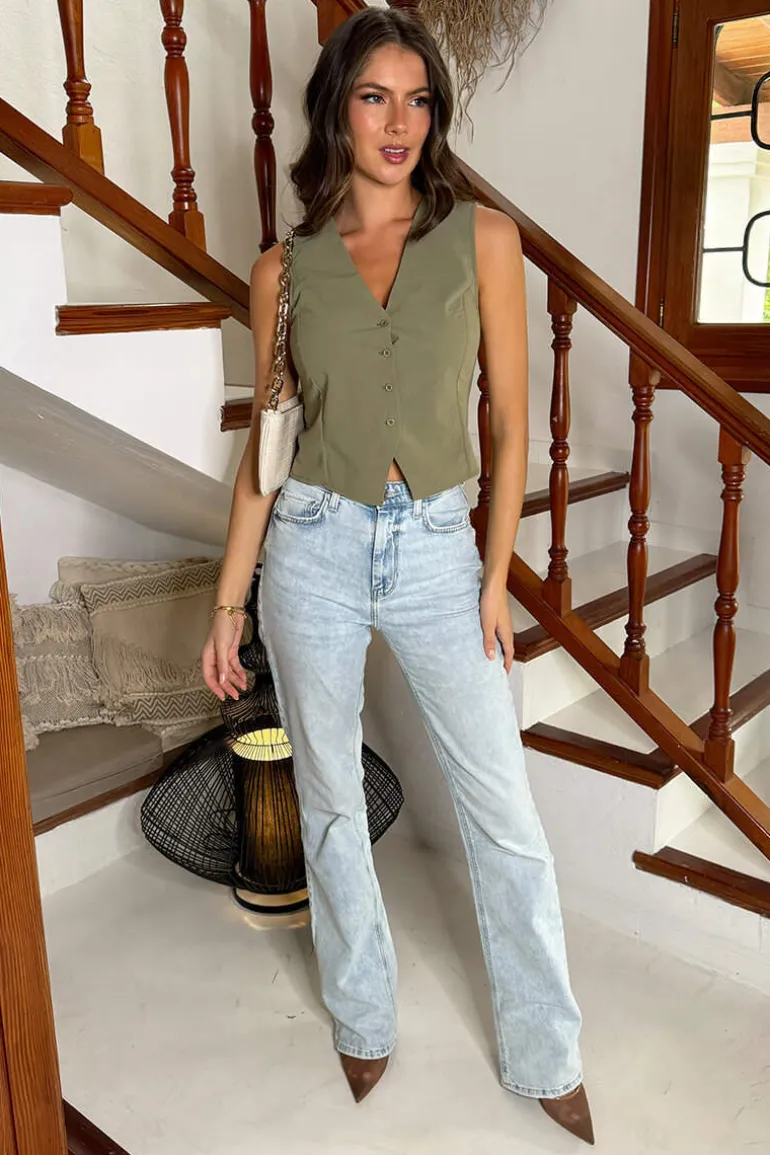 Our Khaki Button Front Crinkle Waistcoat is a classic must-have.