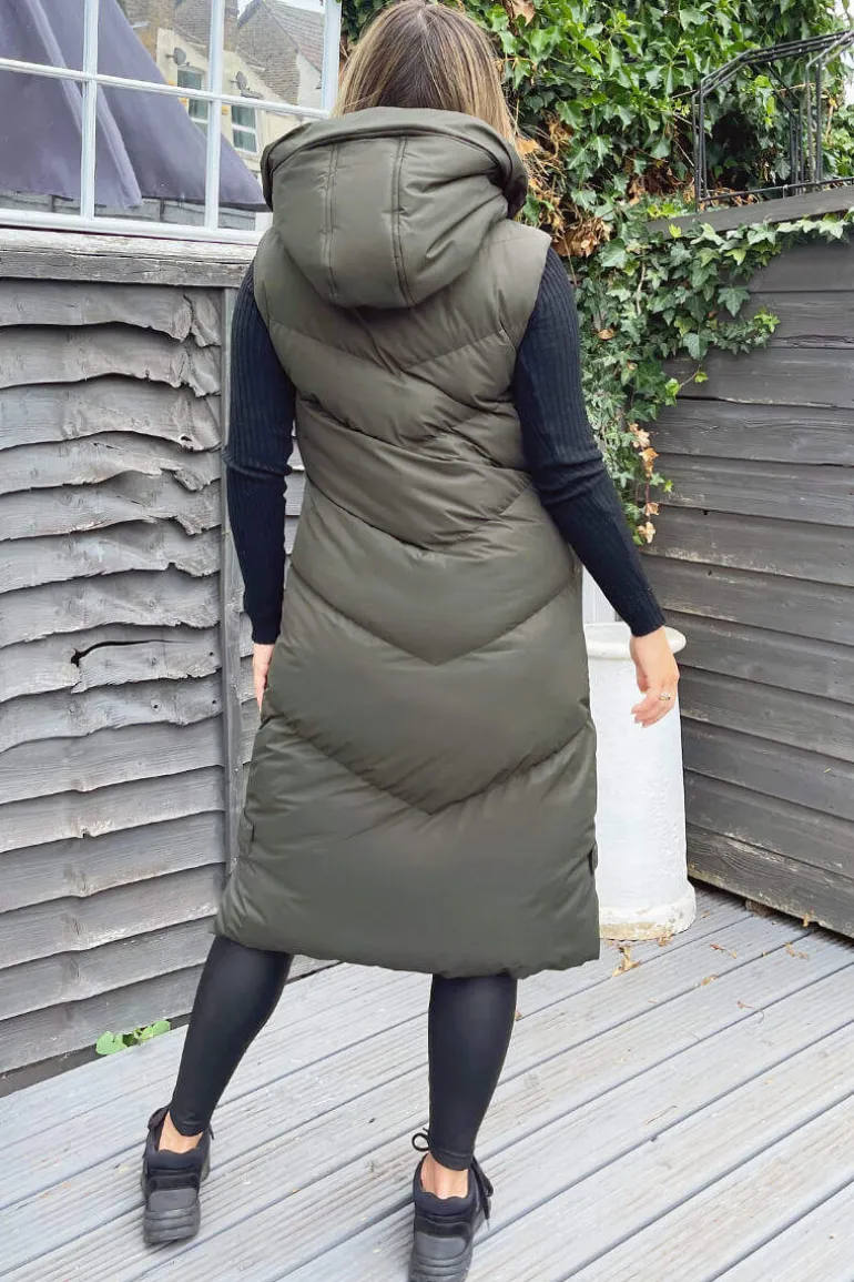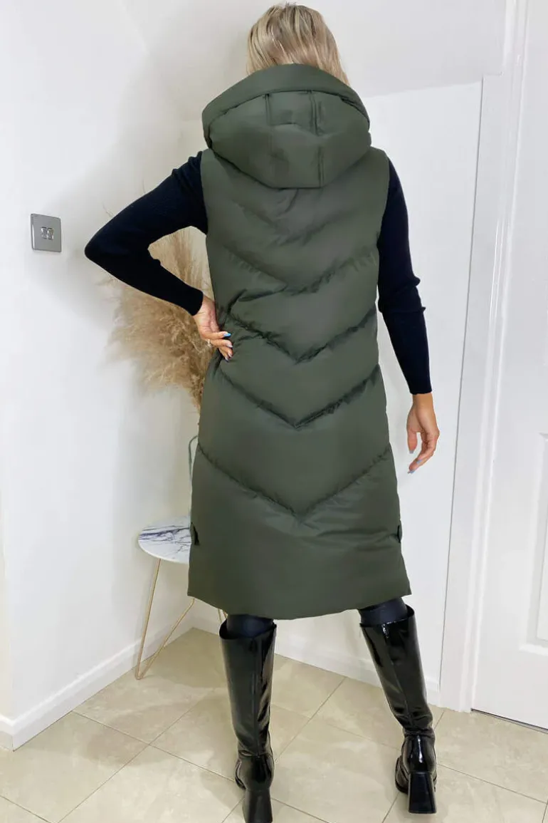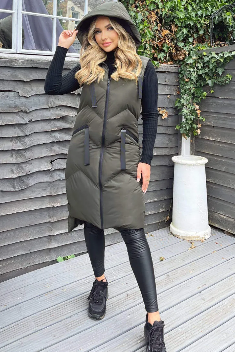 Our Khaki hooded Zip Up Gilet is a wardrobe staple! This design