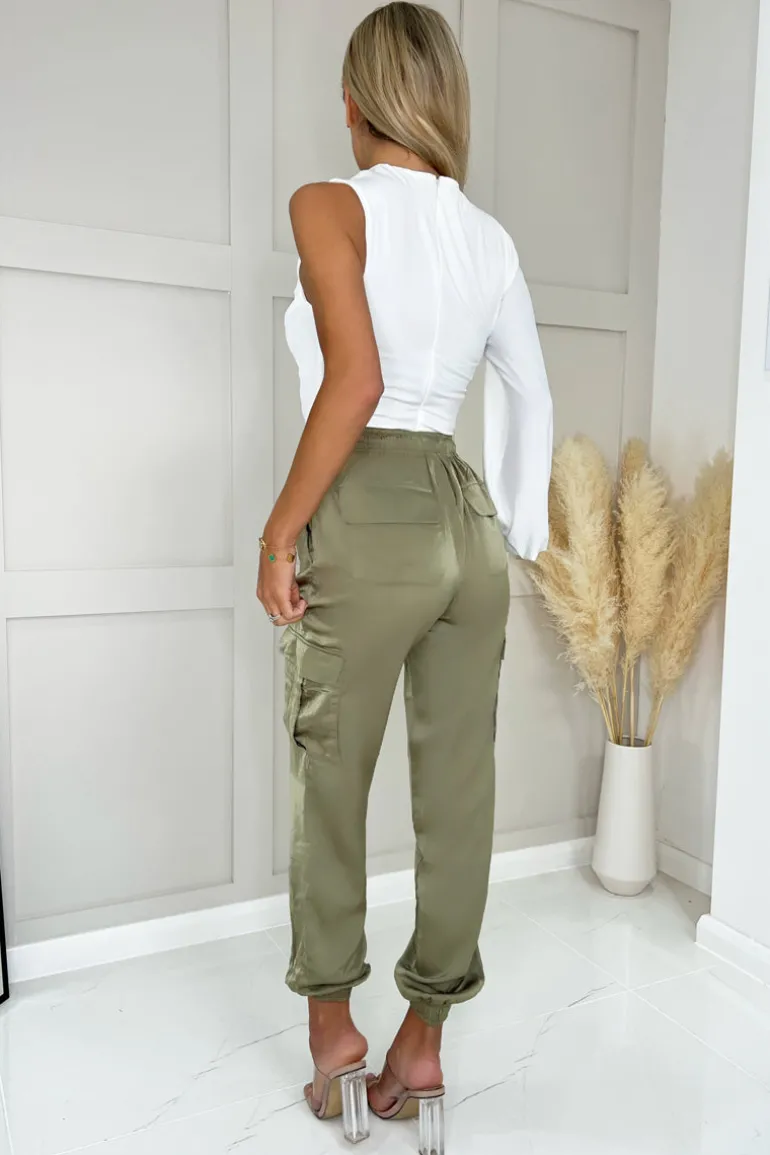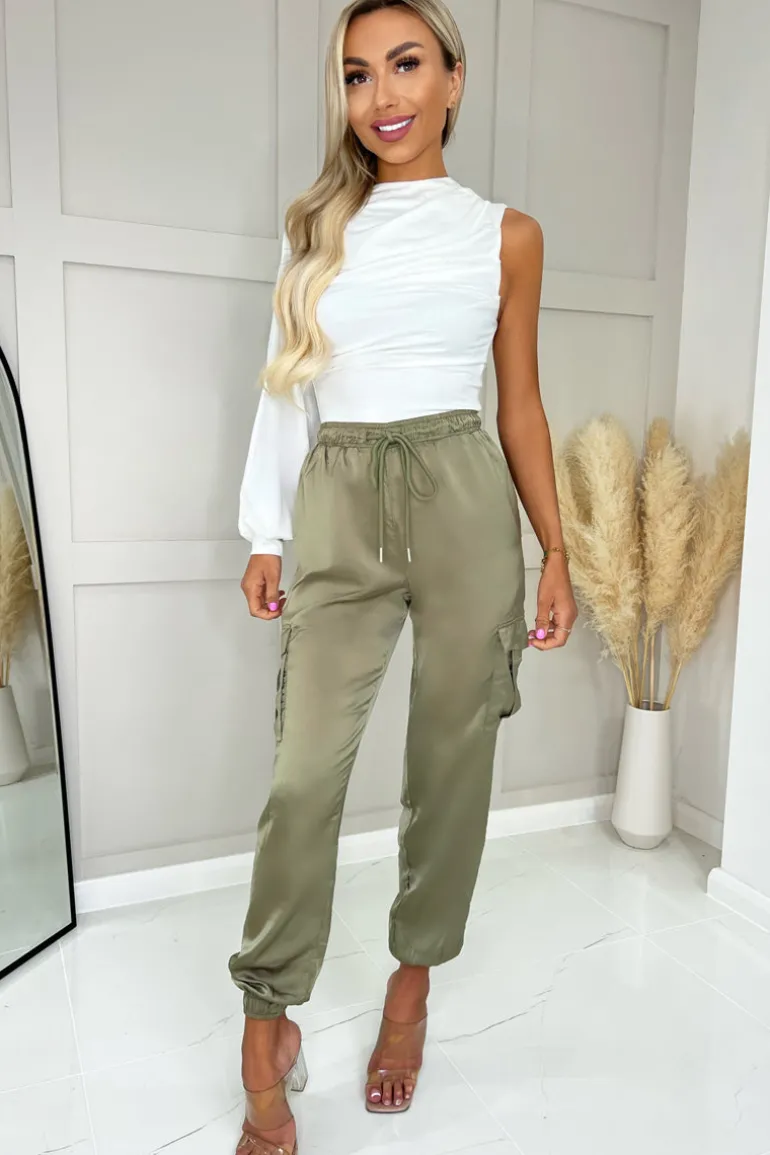 Stay on trend this season and invest in a pair of these Khaki Satin