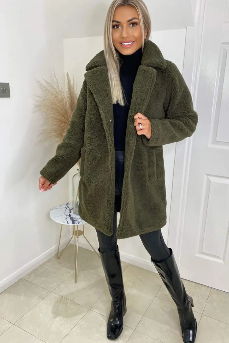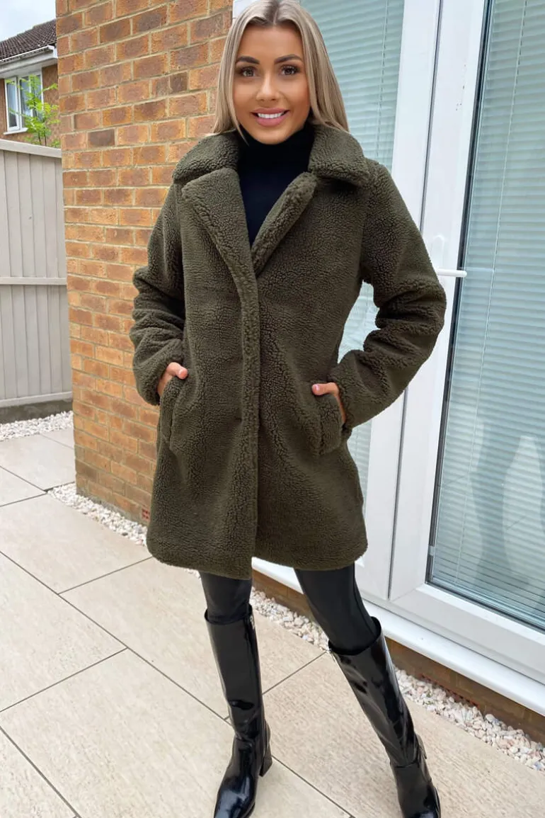 This Khaki Teddy Faux Fur Coat With Collar is perfect to add extra