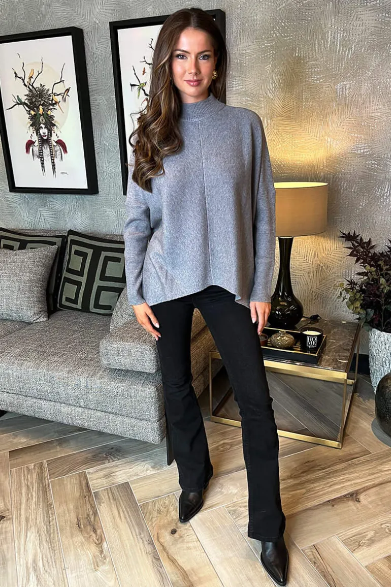 Our warm and cosy Mid Grey Oversized Mock Neck Jumper is perfect piece