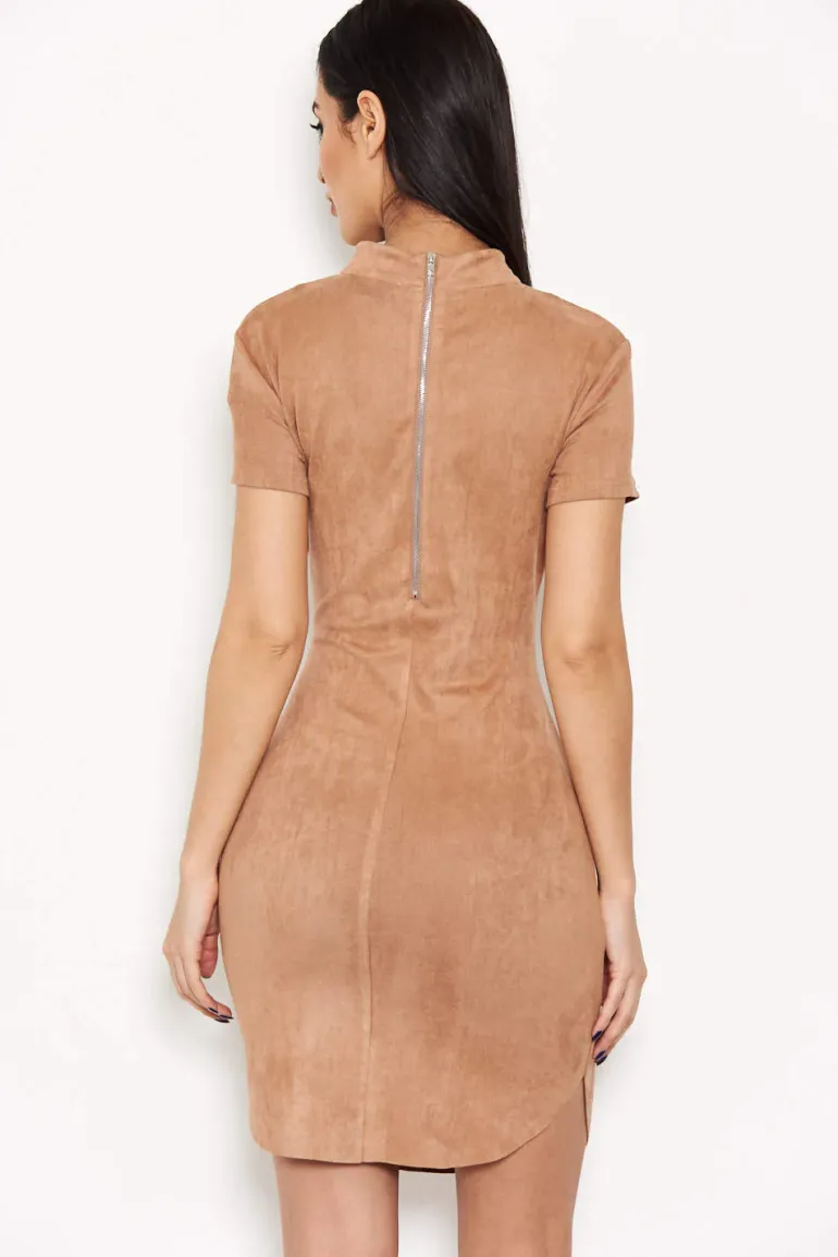 This curved hem faux suede short-sleeved mini dress is an AX Paris