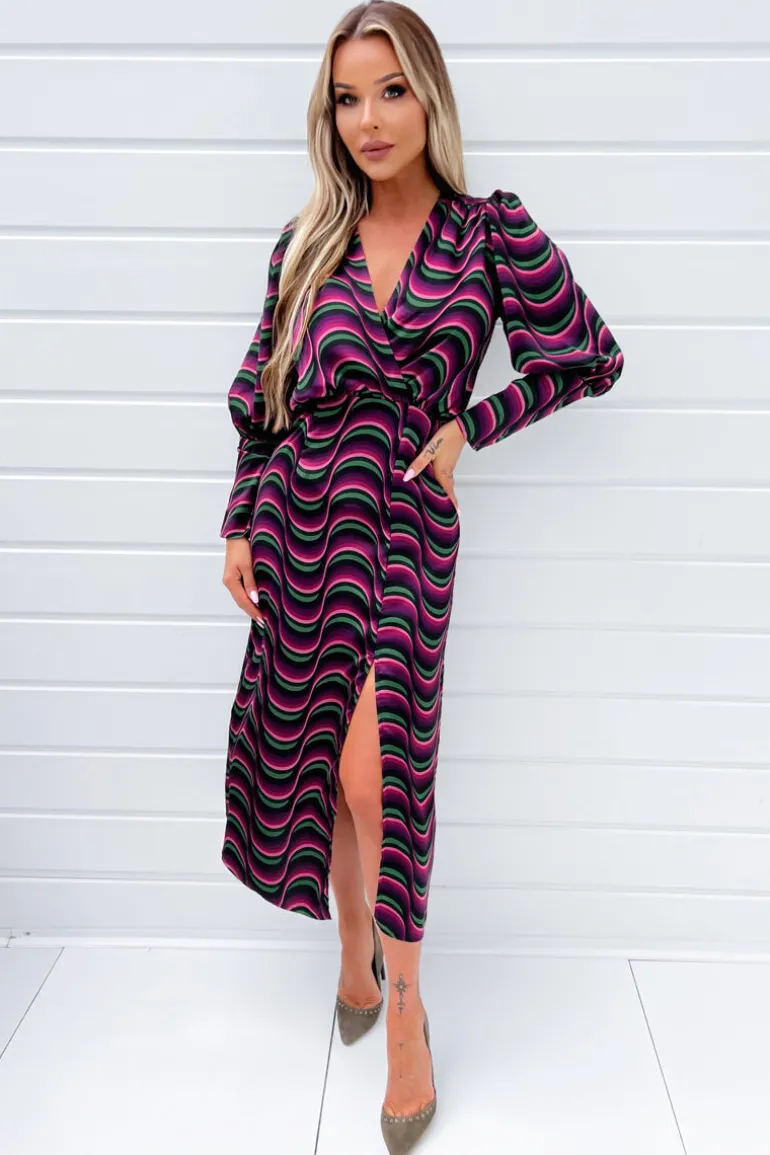 Our Multi Printed Long Sleeve Wrap Top Midi Dress is the perfect