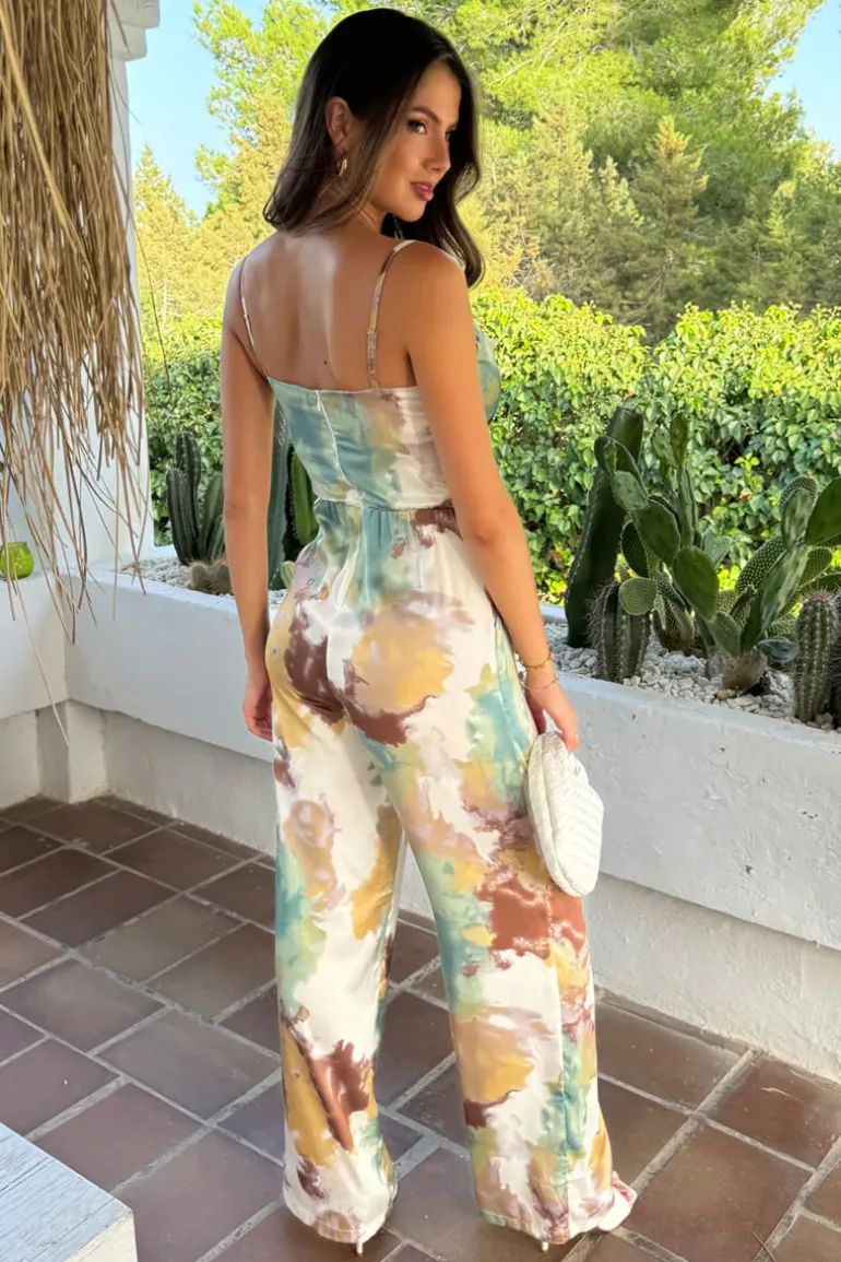 Our Multi Smudge Print Strappy Cowl Neck Jumpsuit is the perfect day
