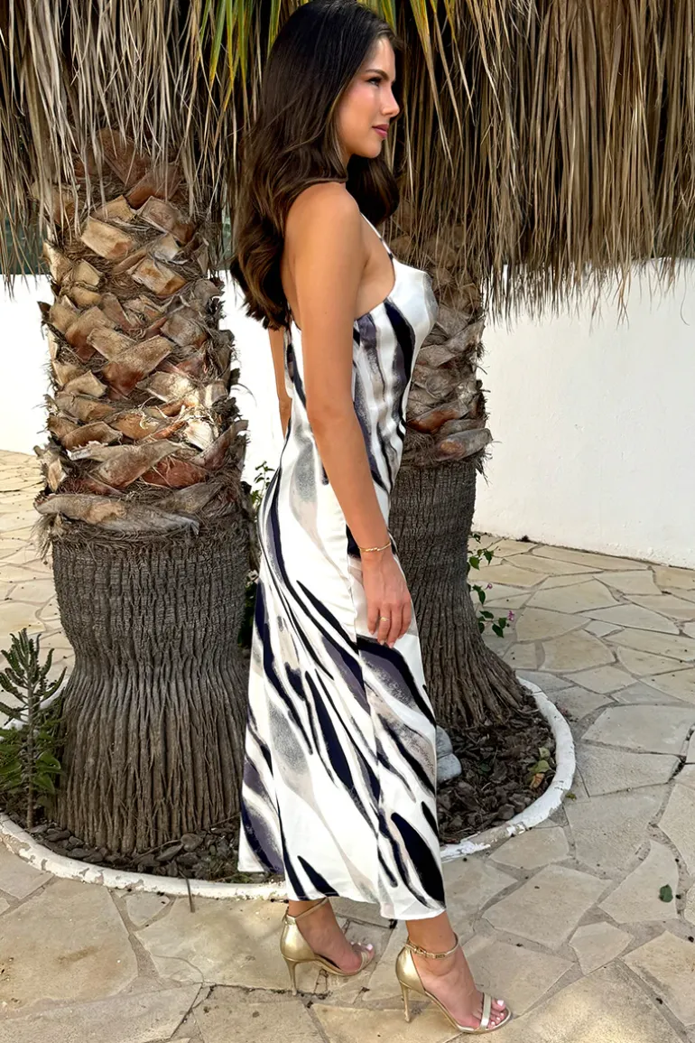 Strappy Twist Back Slip Midi Dress. Featuring our stunning satin-feel