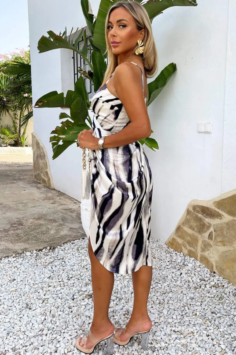 This Navy and Cream Stripe Print Strappy Wrap Top Midi Dress is a must