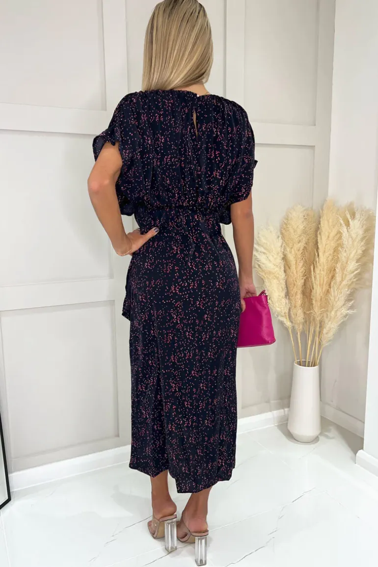 Look and feel gorgeous in our Navy And Pink Printed Wrap Skirt Midi