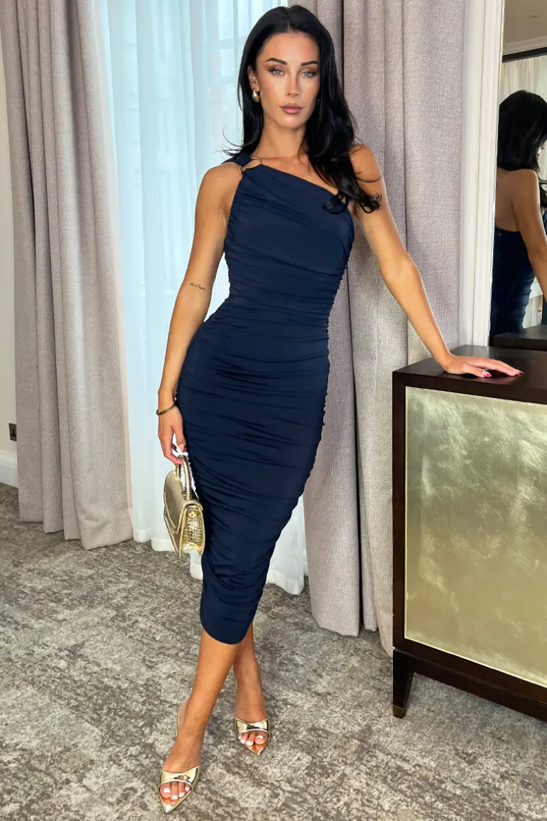 Enhance your curves in our Navy One Shoulder Ring Detail Ruched